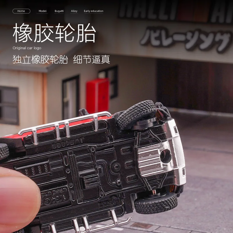 - The detailed exterior includes accurate elements like six black tires with realistic rims, black door handles, side mirrors, rear spare tire, tail lights, and a functional roof rack for an adventurous style.