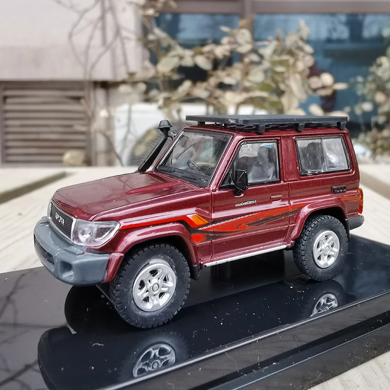 Imagine adding this stunning diecast 1:64 scale Toyota Land Cruiser 70 Series to your collection. With its meticulously crafted design, this model embodies the rugged elegance of the iconic vehicle. The sleek silver finish with eye-catching black accents on one model contrasts beautifully with the deep red matte finish of its counterpart. Each detail, from the textured roof rack to the impressive front grilles and clear windows, brings authenticity and charm to this collectible masterpiece. Perfect for display, you will be proud to showcase both models in your collection.