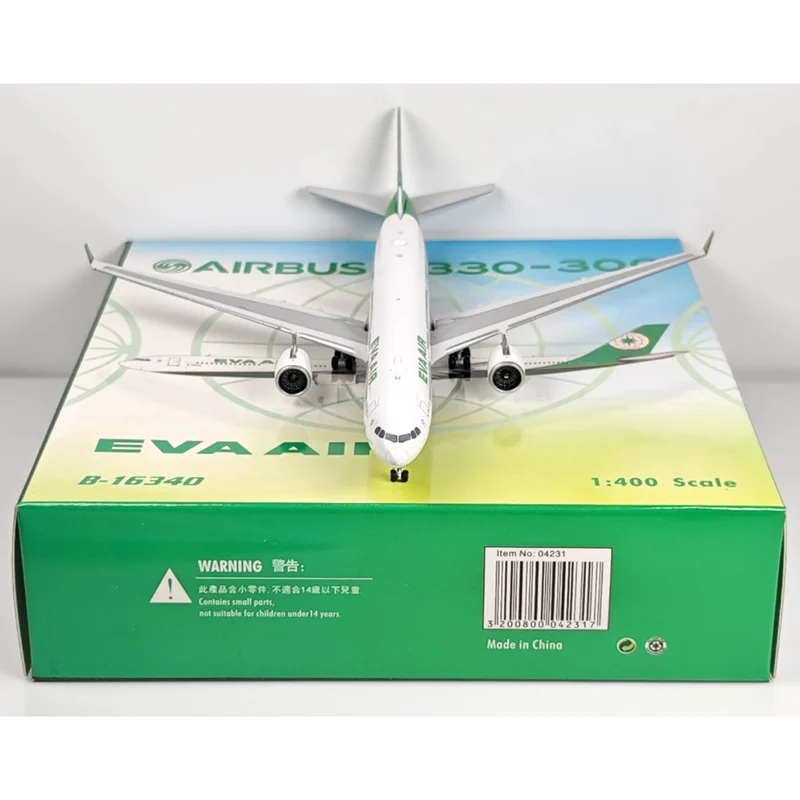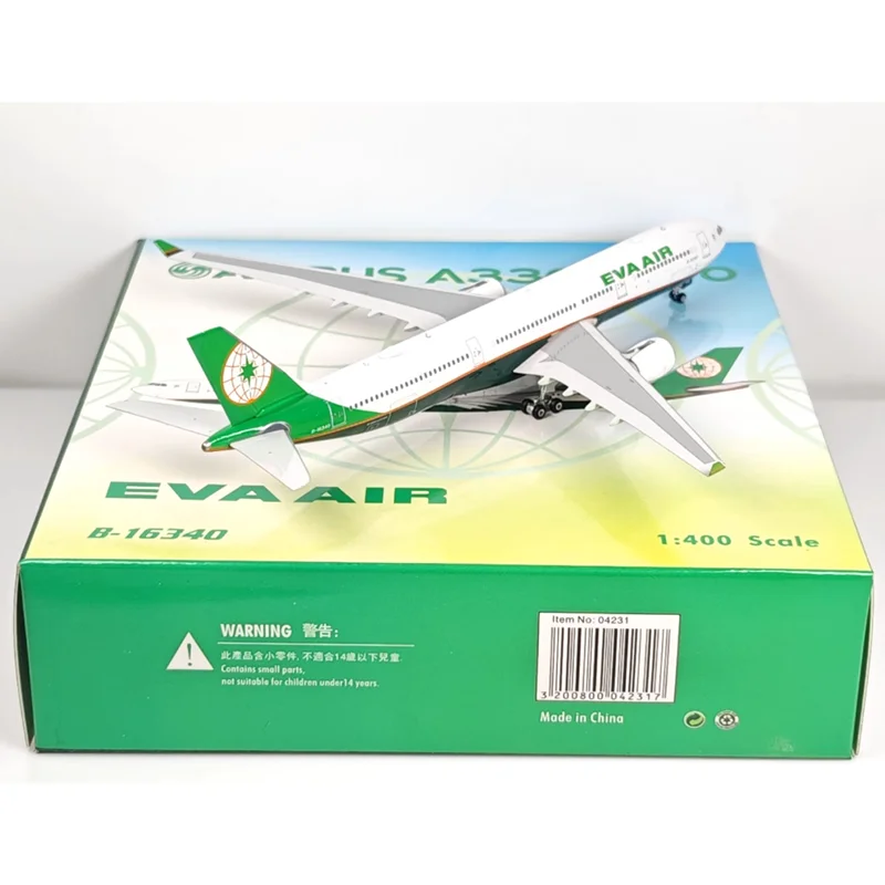 This exquisite model airplane showcases the Airbus A370-300 by Phoenix Diecast, capturing the sleek design and branding of EVA Air. The model features impeccable detailing—from its white and green color scheme to the vibrant logo on the tail. The intricate design includes accurately depicted engines beneath the wings and a beautifully crafted landing gear, enhancing its realistic appearance. Perfect for collectors and aviation enthusiasts, this diecast model stands out with its delicate finish and vibrant presentation, making it a remarkable addition to any display. Add this stunning model to your collection and appreciate the details that define the Airbus legacy.