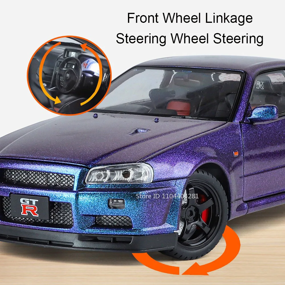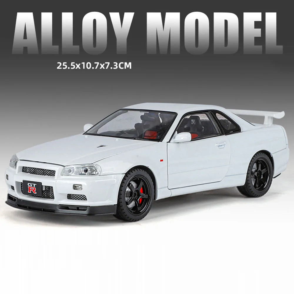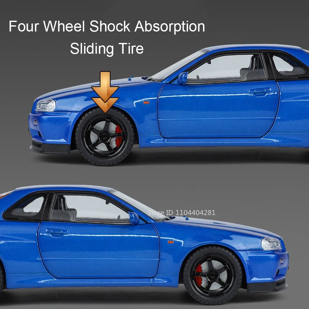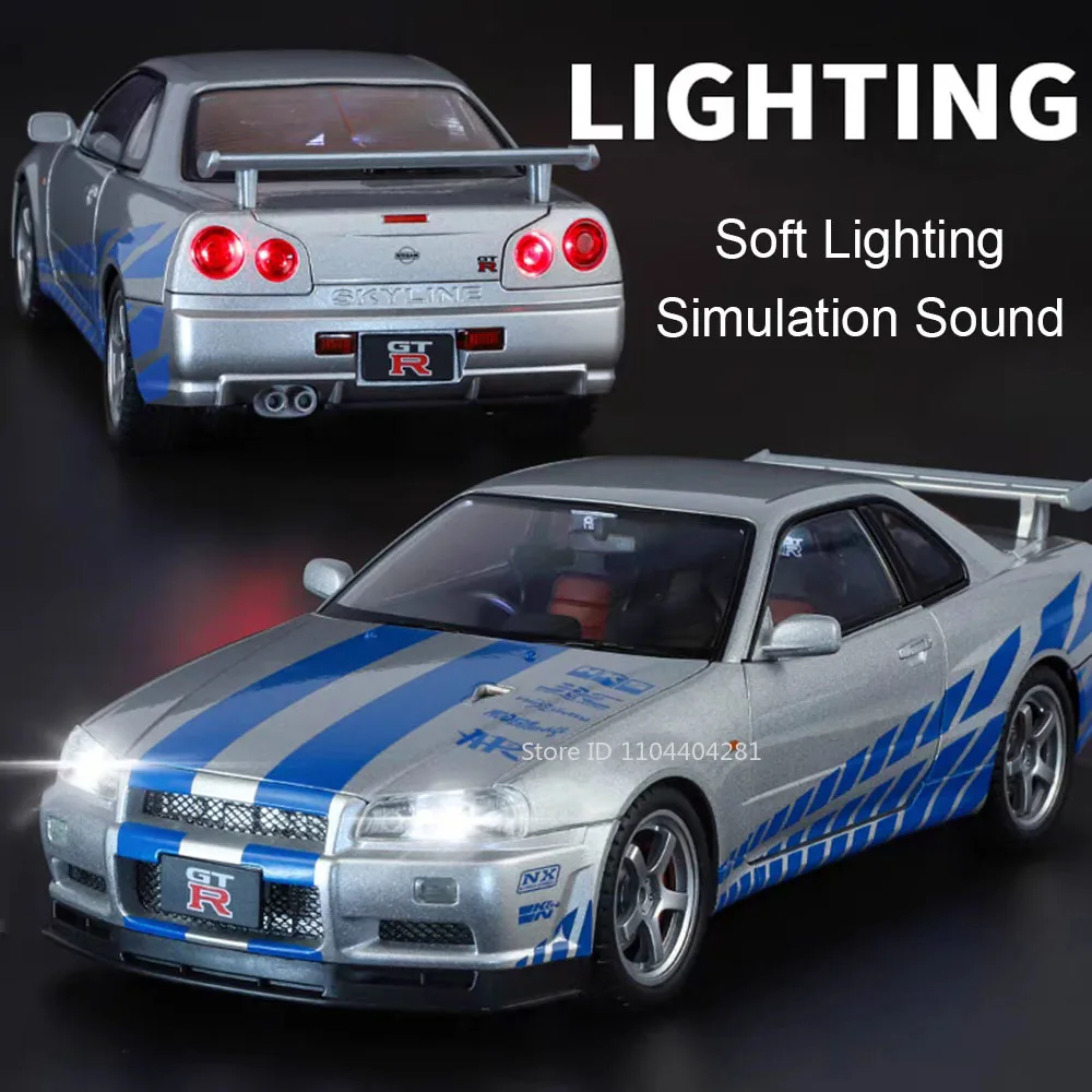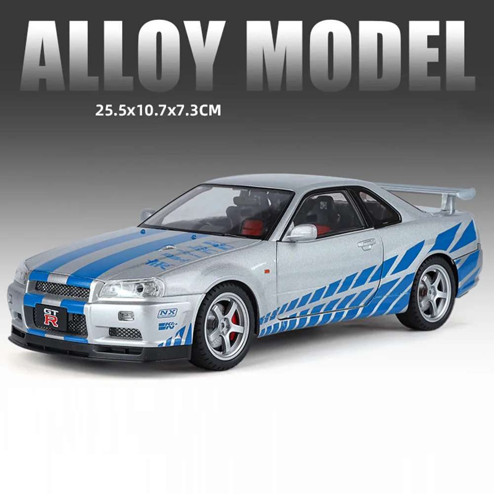 This 1:18 scale diecast alloy car model features a durable metal body, plastic chassis, and rubber tires, available in vibrant colors including blue, red, purple, silvery, and white. The Skyline measures approximately 25.5 x 10.7 x 7.3 cm, while the Huayra is about 26.5 x 12.5 x 6.5 cm. Both models include functional doors that open, and are equipped with realistic lighting and music features, powered by batteries (not included). Crafted with high-quality diecast processes and CE certified, these models are perfect for collectors, enthusiasts, or as impressive gifts for those who appreciate detailed, contemporary sports car aesthetics.