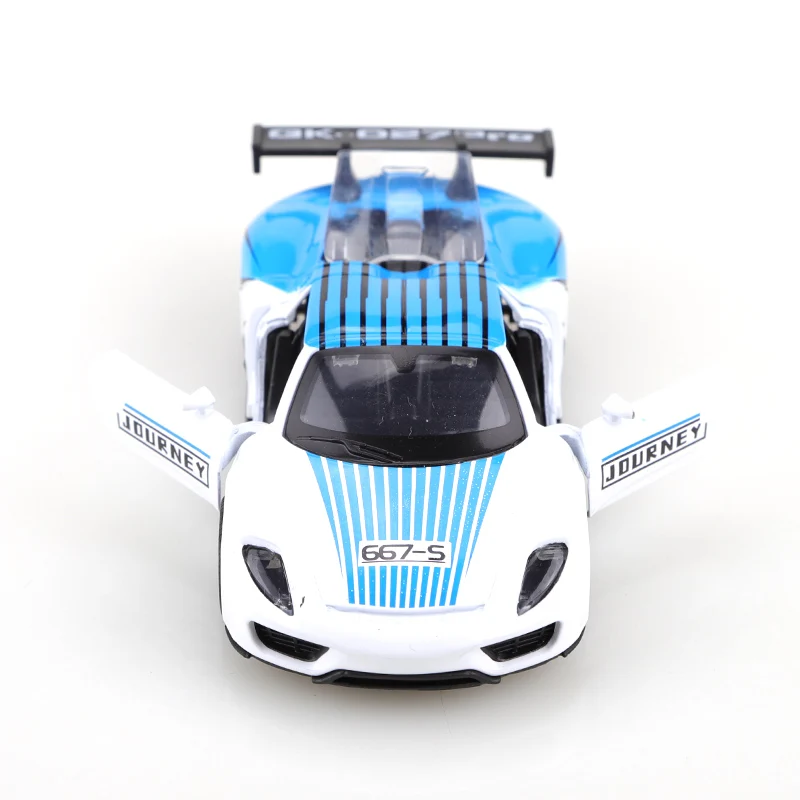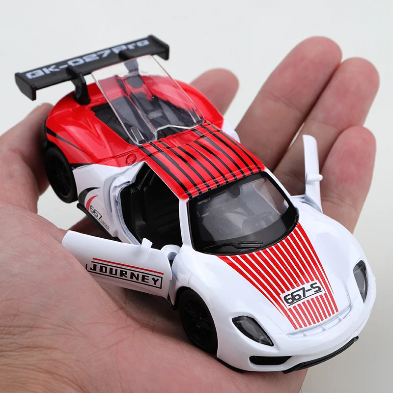Experience the thrill of high-speed racing with this 1:36 scale diecast alloy racing car, crafted from durable metal and featuring a sleek, aerodynamic design. Available in vibrant gray, bold red, and striking blue, it boasts sharp lines, sporty details like black air intakes, side windows, a rear spoiler, and a black-bordered “JOURNEY” side mirror. The prominent “667-S” badge adds to its racing appeal. Its pull-back mechanism allows effortless movement, with no batteries required. Suitable for children aged 3-12 and adult collectors, this CE-certified model combines style and performance, making it a perfect addition to your collection or a dynamic gift.