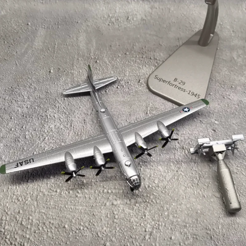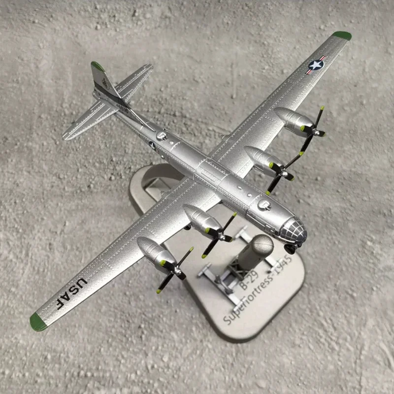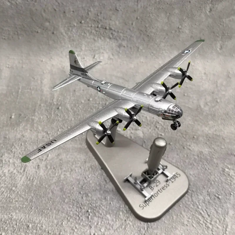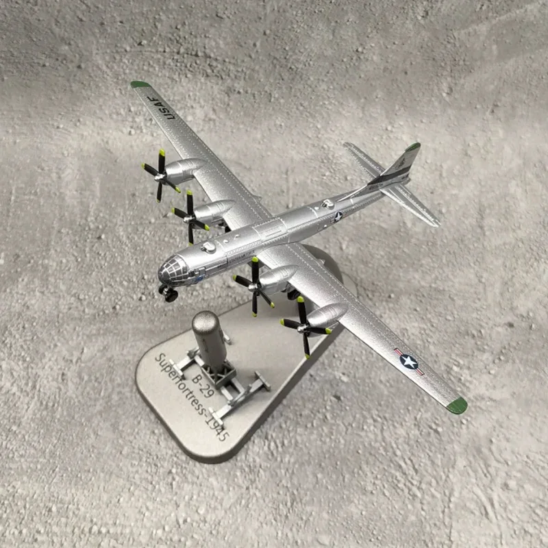 - Includes a sturdy display stand labeled “Superfortress 1945 B-29,” supporting the aircraft at a slight elevation for attractive presentation.