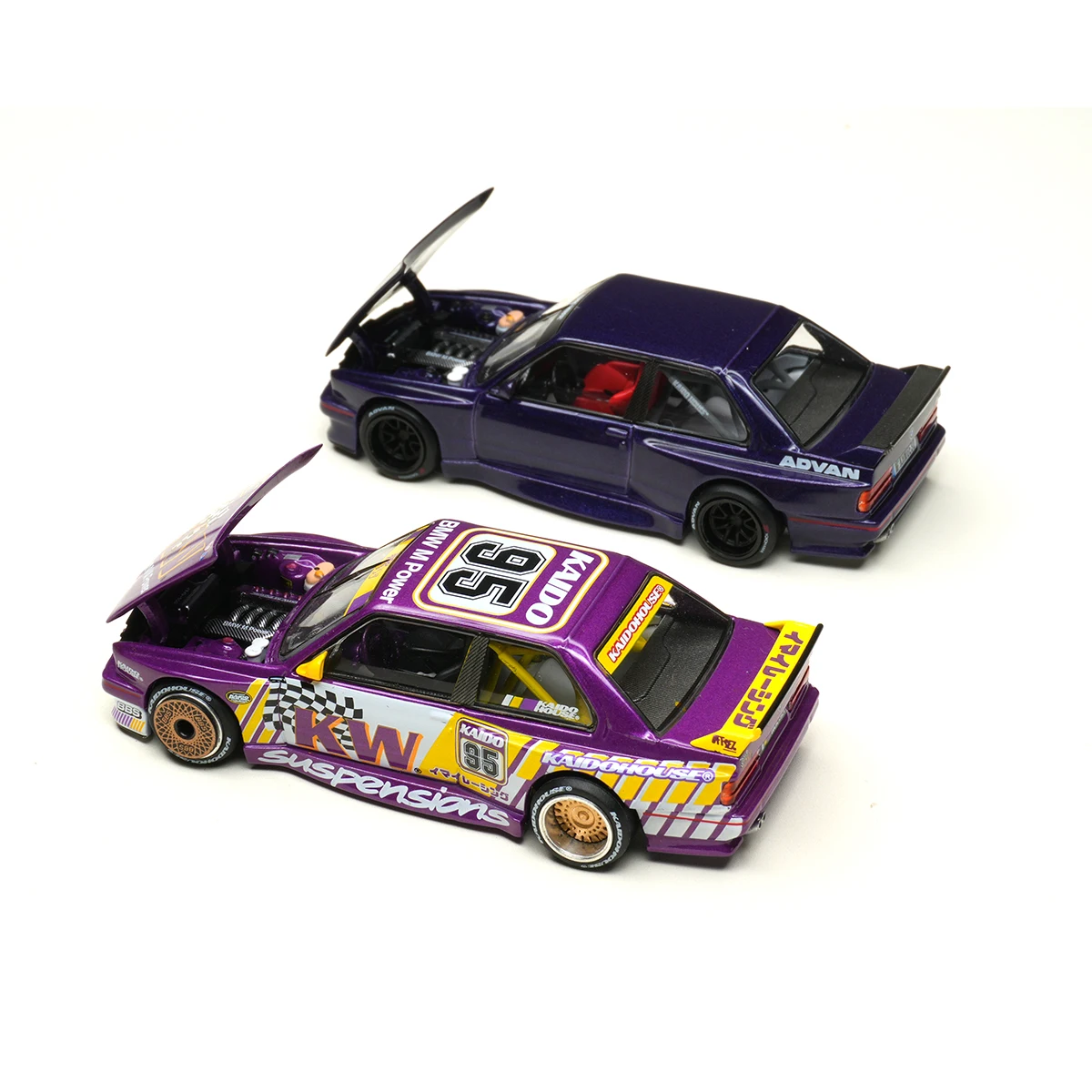 Experience the thrill of owning this intricately crafted 1:64 scale diecast BMW M3, designed for adult collectors who appreciate detailed craftsmanship. Finished in a sleek metallic navy blue or vibrant purple with racing livery, these models showcase dynamic, sporty aesthetics inspired by high-performance racing cars. The models feature aerodynamic body shapes, authentic decals, and logos, including a large rear wing spoiler and detailed front bumper. With openable hoods revealing finely detailed engines, these cars provide both aesthetic appeal and interactive display options. Crafted from high-quality metal, they embody durability and realism. Perfect for display in a collectible collection or as a gift for enthusiasts who value precision and style in miniature form.