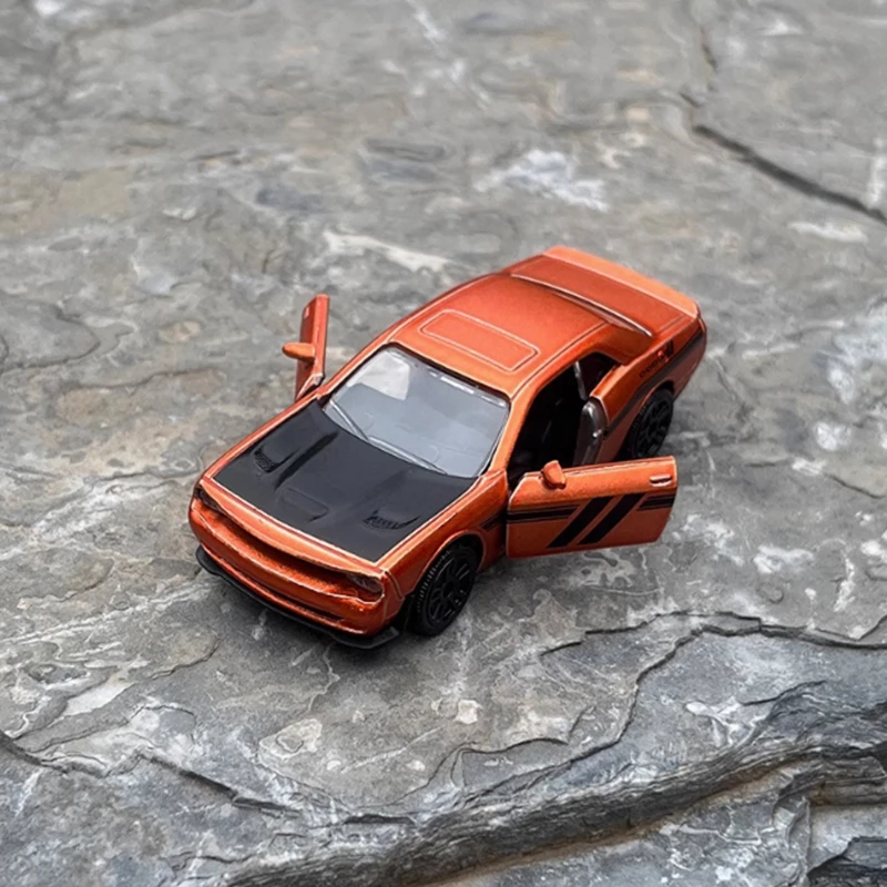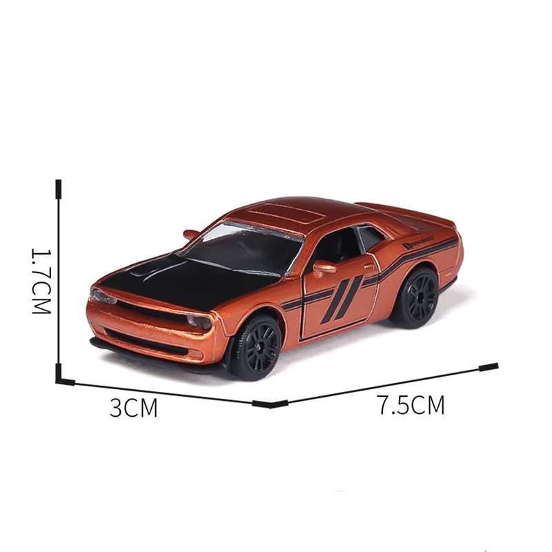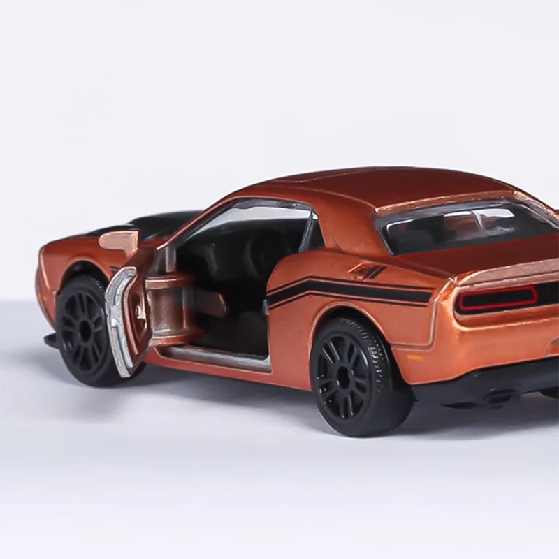 Experience the thrill of owning a meticulously crafted 1:64 scale diecast model of the Dodge Hellcat Challenger SRT, expertly made from alloy and plastic. Its striking metallic copper or bronze finish enhances every curve and line, giving it a premium, luxurious appearance. The glossy surface reflects light beautifully, showcasing the detailed design elements like the bold front grille, headlight features, and hood scoop. Black racing stripes run along the sides, contrasting sharply with the vibrant metallic hue and emphasizing its sporty, aggressive personality. Perfect for collectors or enthusiasts, this model is an eye-catching decorative piece that captures the essence of the original vehicle’s design. It’s a compelling item for display in any setting, reminding you of high-performance automotive craftsmanship.