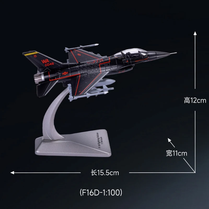 Imagine owning this stunning replicas of the F-16 Fighting Falcon, meticulously crafted to capture every detail of the iconic jet. Measuring 15cm in length, with a wingspan of 10.5cm and a height of 5cm, this model offers a perfect scale representation (1:100). The sleek, aerodynamic fuselage is painted primarily in striking black, highlighted with bold red accents on the tail fin and along the body lines, giving it a fierce, high-contrast appearance. Made from durable alloy and plastic materials, this collector’s piece combines realistic details—panel lines, small air intakes, and landing gear housings—delivering an authentic aircraft look. It is designed for display, ideal for aviation enthusiasts and collectors who appreciate precision craftsmanship.
