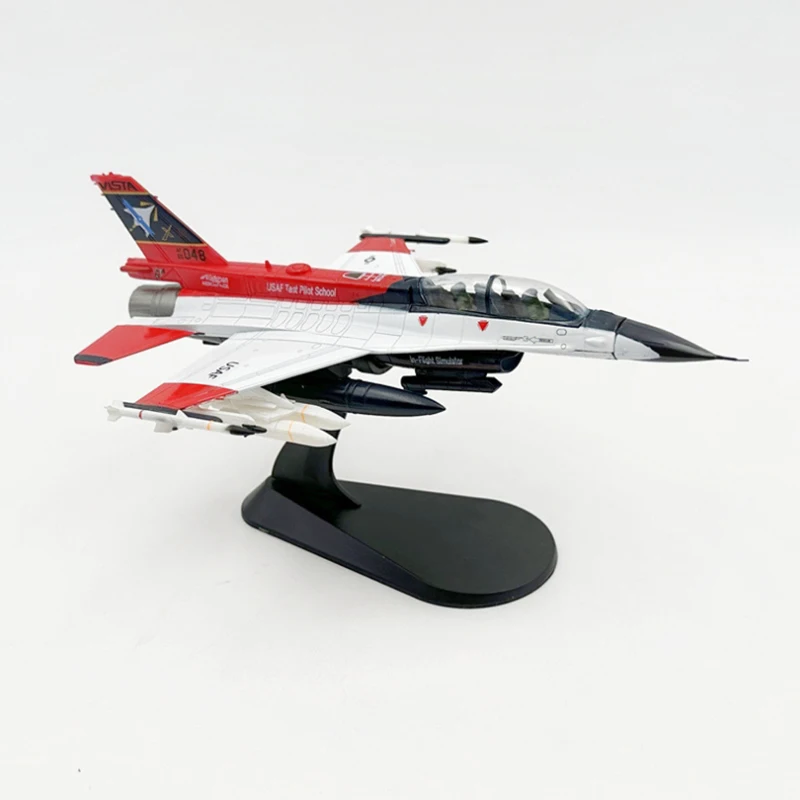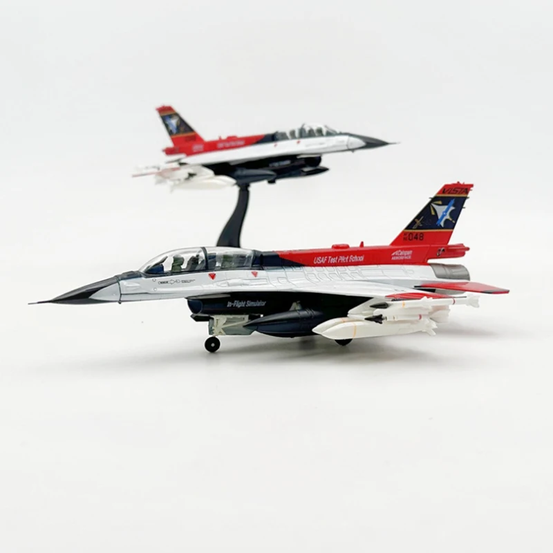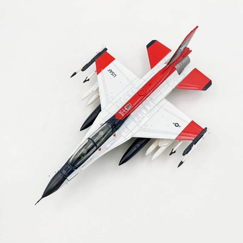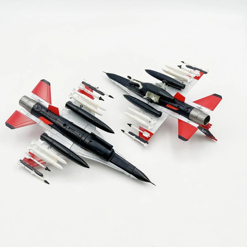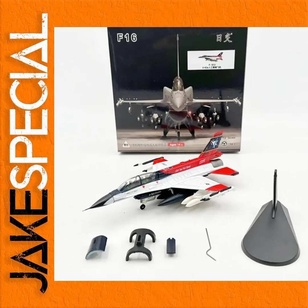Step into the world of military aviation with this meticulously crafted diecast metal F16D aircraft model. Designed at a 1/72 scale, this model measures approximately 21.5 cm in length and 14 cm in wingspan, making it an ideal display piece for enthusiasts and collectors. The sleek design features a smooth, aerodynamic fuselage painted in crisp white, accentuated by bold red highlights on the upper fuselage, tail fins, and wing tips, creating a striking visual contrast. The model showcases intricate details such as air intakes, vents, missile mounts, and a transparent cockpit canopy, enhancing its realism. Complete with a sturdy display stand and accessories, it captures the essence of a real fighter jet with precision and style, elevating any collection or display setting.