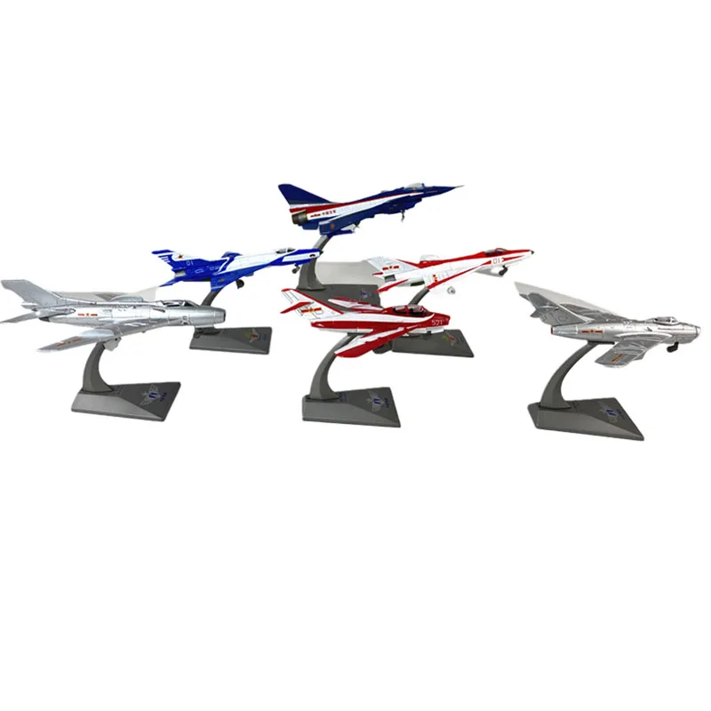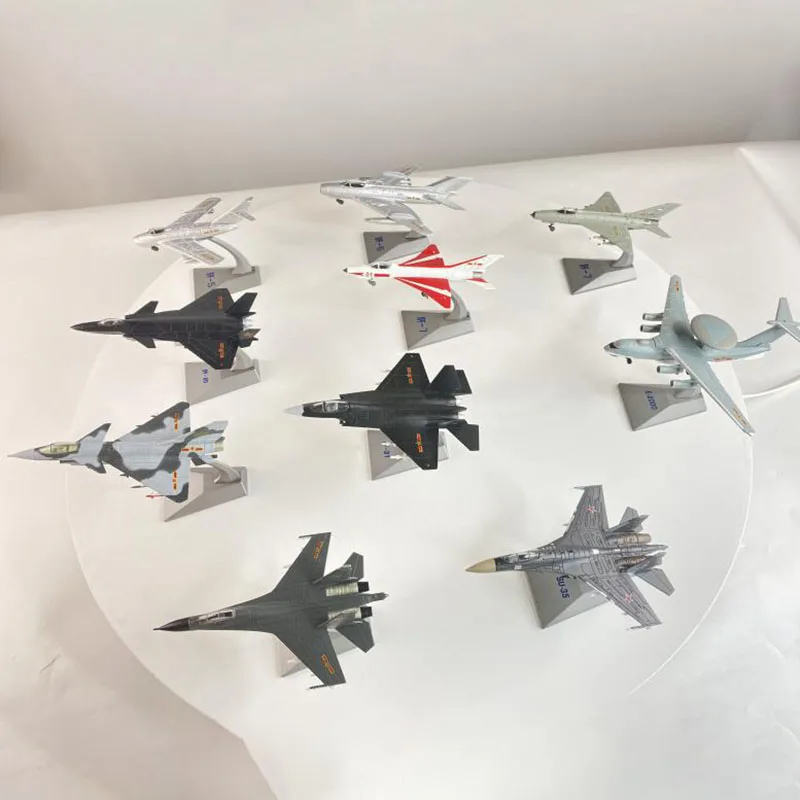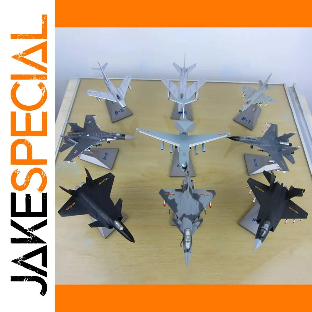 Discover this highly detailed diecast fighter aircraft model collection available in 1:144 and 1:100 scales, with also 1:300 options. Crafted from metal alloy with ABS components, these models showcase realistic camouflage, sleek aerodynamic contours, sweeping wings, vertical stabilizers, and intricate details such as weapons attachment points and landing gear with wheels. The collection features iconic aircraft including Su-35, Su-30, J-10, J-5, J-6, J-20, J-20B, J-31, J-7, and KJ 2000, all finished in authentic color schemes of gray, black, and camouflage patterns. Designed for display and adult collectors, these fragile models evoke authenticity and precision craftsmanship, making a striking addition to any aviation enthusiast’s collection.