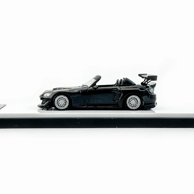 Experience the thrill of owning a meticulously crafted 1/64 scale diecast model of the iconic Honda S2000 AP1. Designed for enthusiasts and collectors, this model captures every detail of the original sports car, from its sleek, aerodynamic silhouette to its custom racing-inspired modifications. The glossy black finish highlights its modern, aggressive lines, while the detailed multi-spoke wheels and rubber tires create a lifelike appearance. The sharp headlights, wide grille, and vented hood add to its sporty character. With an aerodynamic rear wing spoiler and finely detailed taillights, this model perfectly embodies high-performance aesthetics. Whether displayed at home, used as a collector's piece, or given as a gift, it’s sure to impress.