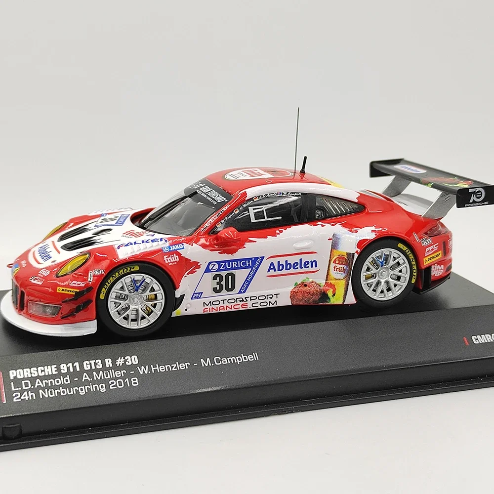 Transport yourself to the heart of endurance racing with this exquisite die-cast model of the Porsche 911 GT3 R, celebrating its legendary appearance at the 2018 24 Hours Nürburgring. This meticulously crafted model, mainly in red, features striking white and black accents, making it a stunning addition to any collection. You'll admire the incredible attention to detail, from the aerodynamic rear wing to the sponsor logos, encapsulating the spirit of racing. Imagine proudly displaying this exquisite piece, showcasing not only your passion for motorsports but also your appreciation for fine craftsmanship.
