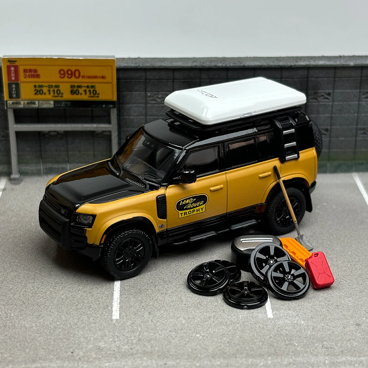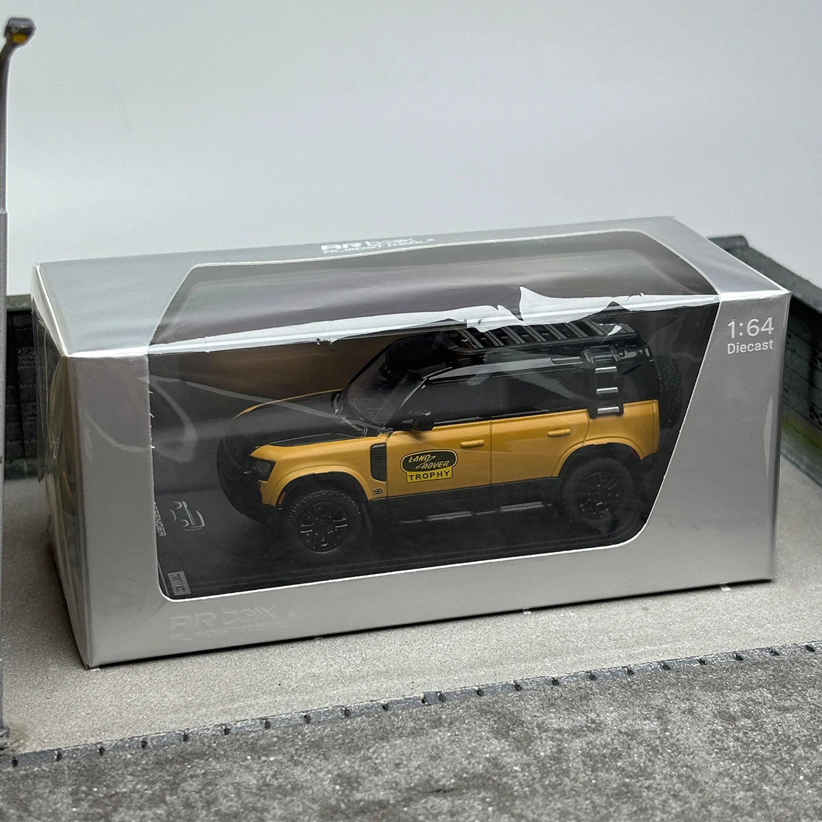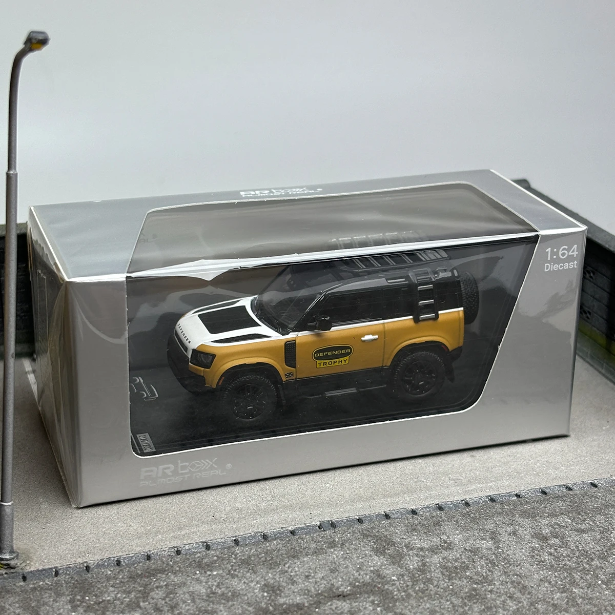 Experience the thrill of off-road adventures with this stunning Diecast 1/64 Scale AR BOX Model Car, featuring the iconic Land Rover Defender 110. Adorned in a vibrant yellow body and sleek black roof, this model captures the essence of rugged elegance. With intricate details such as the bold “DEFENDER” emblazoned on the hood and “DEFENDER TROPHY” on the side, this piece is a must-have for collectors and enthusiasts. Measuring approximately 7 cm, it's perfectly scaled for display, showcasing the high-quality craftsmanship that makes each model truly unique. Add this striking model to your collection and bring the spirit of the outdoors into your home.