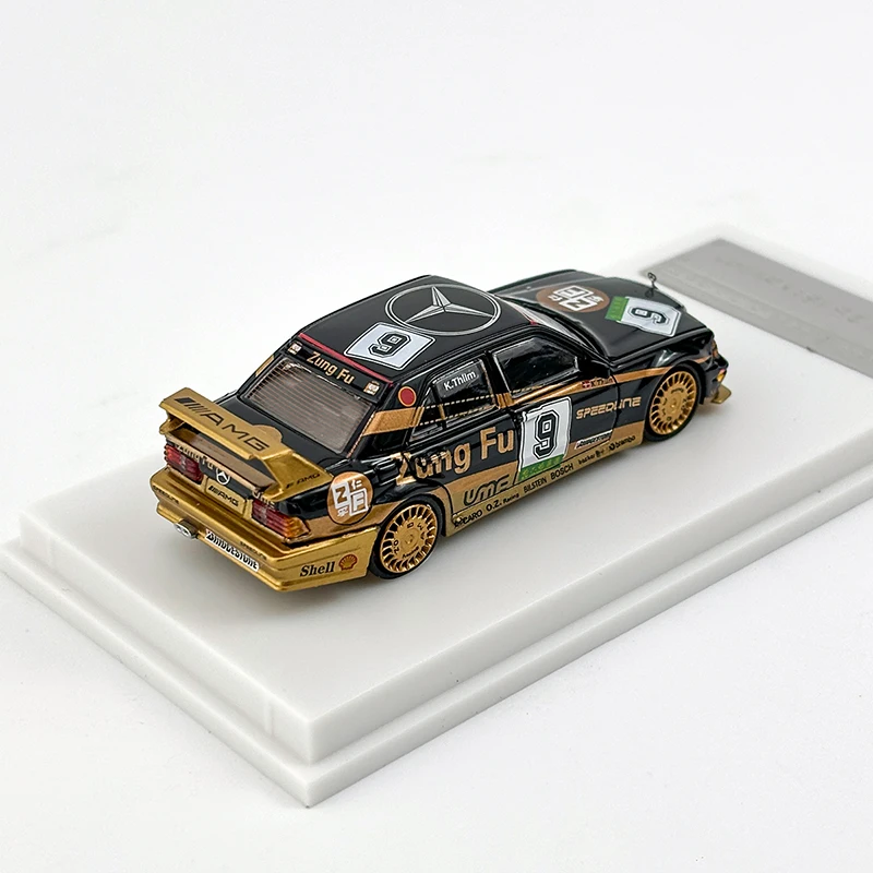 Imagine adding this stunning set of three diecast Mercedes Benz 190E 2.5-16 EVO2 Racing Car models to your collection. Each model, scaled at 1/64, is crafted from high-quality materials including metal, plastic, and rubber, ensuring durability and elegance. The sleek black finish is complemented with striking gold accents, evoking the spirit of racing. With intricate details like the front grille and aerodynamic rear wings, these models offer a true representation of racing excellence. Display them on the pristine white bases with silver nameplates and watch them become the centerpiece of any room.