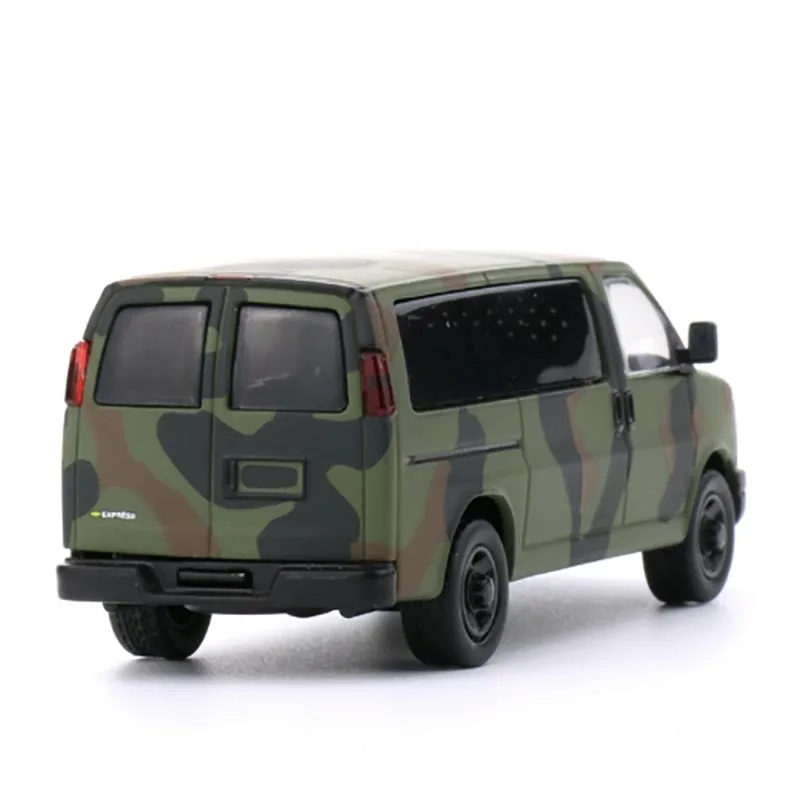 Step into a world of rugged style with this detailed diecast model of the Chevrolet Express VAN, designed for adult collectors and enthusiasts. Measuring about 8.8 centimeters in length, this 1:64 scale replica offers a realistic portrayal of a military-inspired vehicle. Its camouflage pattern, featuring irregular green, brown, and black patches, covers the entire vehicle, creating a bold, tactical look. The flat roof and rectangular shape emphasize its utilitarian essence, while a matte or slightly glossy finish highlights the alloy and plastic construction’s durability. Painted black windows and small red tail lights add subtle accents. Whether displayed on a shelf or used as a gift, this sturdy model captures a commanding military aesthetic that speaks to strength and precision.