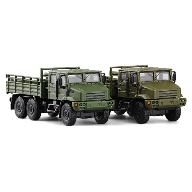 Imagine adding a striking and highly detailed military transport truck to your collection today. Crafted from durable alloy and plastic, this 1/64 scale model captures the rugged and functional essence of real military vehicles. The two models featured showcase stunning camouflage patterns: one in classic green military camouflage with darker and lighter patches for a layered appearance, and the other in desert camouflage with tan, beige, light green, and brown patches for arid environments. Both display intricate exterior details such as clear windshield and side windows, prominent front grilles, textured bumpers, reinforced cargo beds with vertical and horizontal bars, and realistic black tires with tread patterns. Perfect for display, gifting, or collecting, this model brings a touch of military realism to any space.