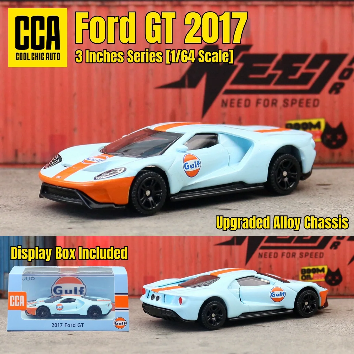 - Vibrant color options include black, grey, Gulf blue and GULF liveries, white, and light blue, all designed to replicate actual vehicle finishes with glossy and matte effects.