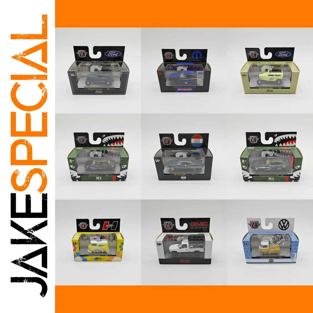 - precise 1:64 scale replicas of popular car brands including Ford, Dodge, Volkswagen, GMC, Datsun, and Chrysler, crafted from high-quality alloys and plastics for durability and realism.