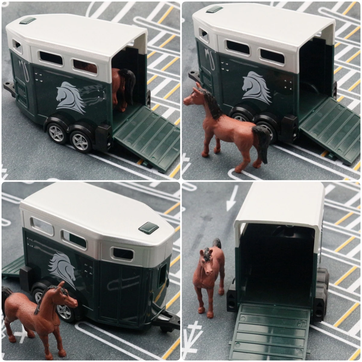 - The trailers display authentic features like roof vents, side access doors, and windows, mimicking real horse transport vehicles with finesse and meticulous design.