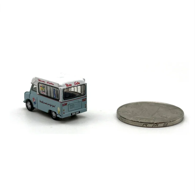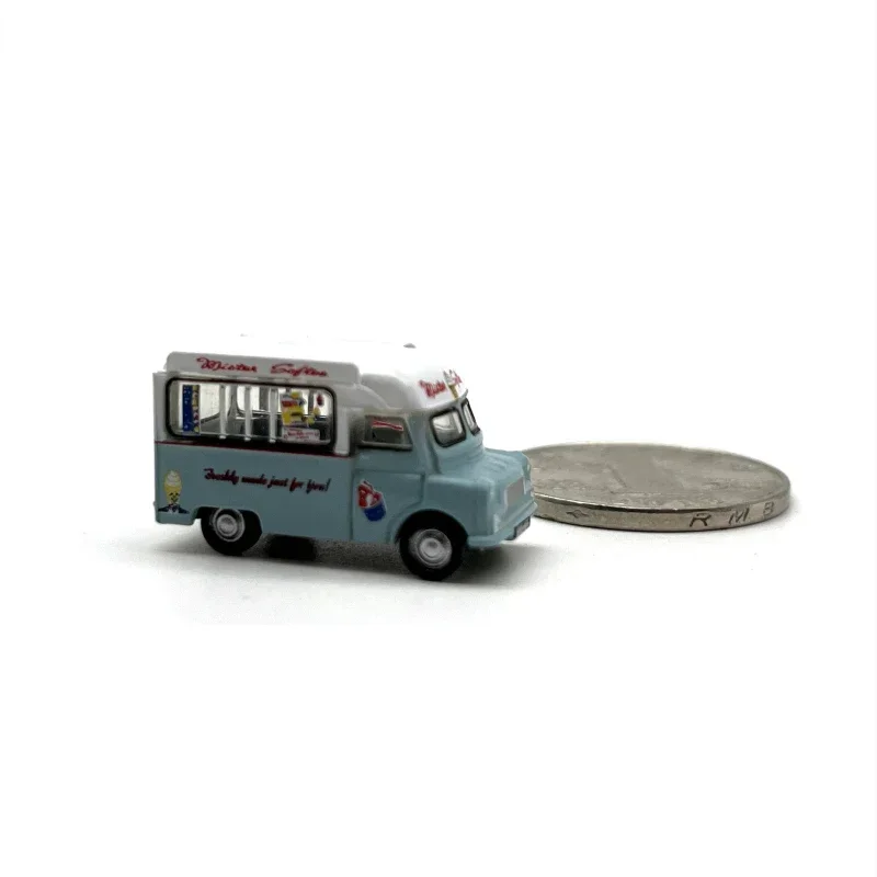 Immerse yourself in nostalgia with this charming diecast model of an ice cream truck, designed by OXFORD. Its soft blue body and white accents beautifully capture the essence of classic ice cream vendors. Featuring colorful graphics with the enticing phrase, “Freshly made just for you!”, this collectible evokes delightful memories of warm summer days. Perfectly scaled at 1:148, measuring 2.5*1.1*1.3 cm, this model is ideal for display on your shelf, desk, or as a treasured gift for fellow collectors. Picture it gracing your collection, bringing a smile every time you pass by.