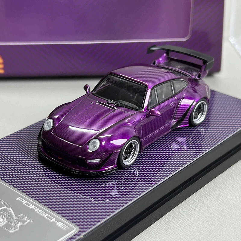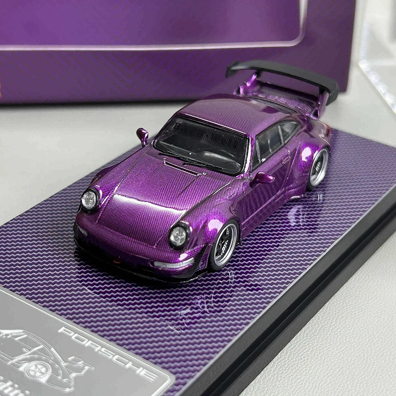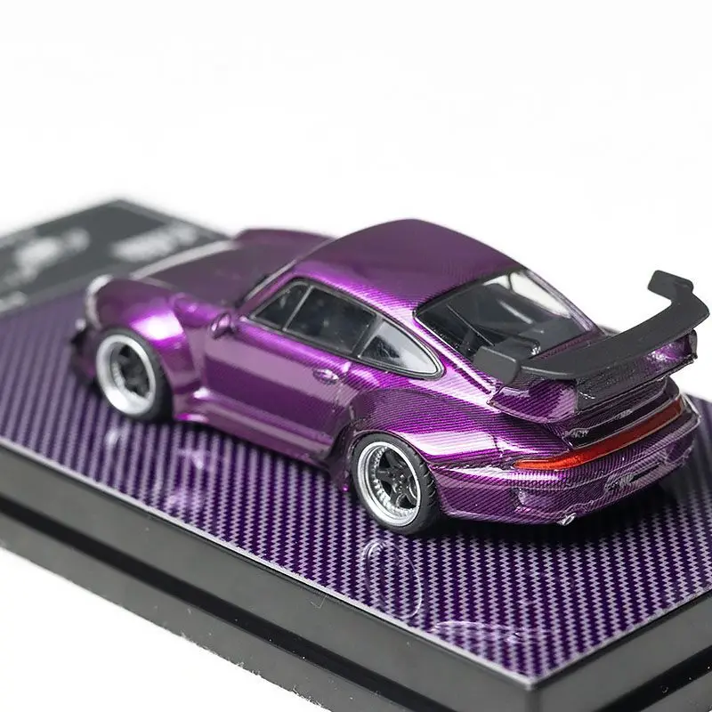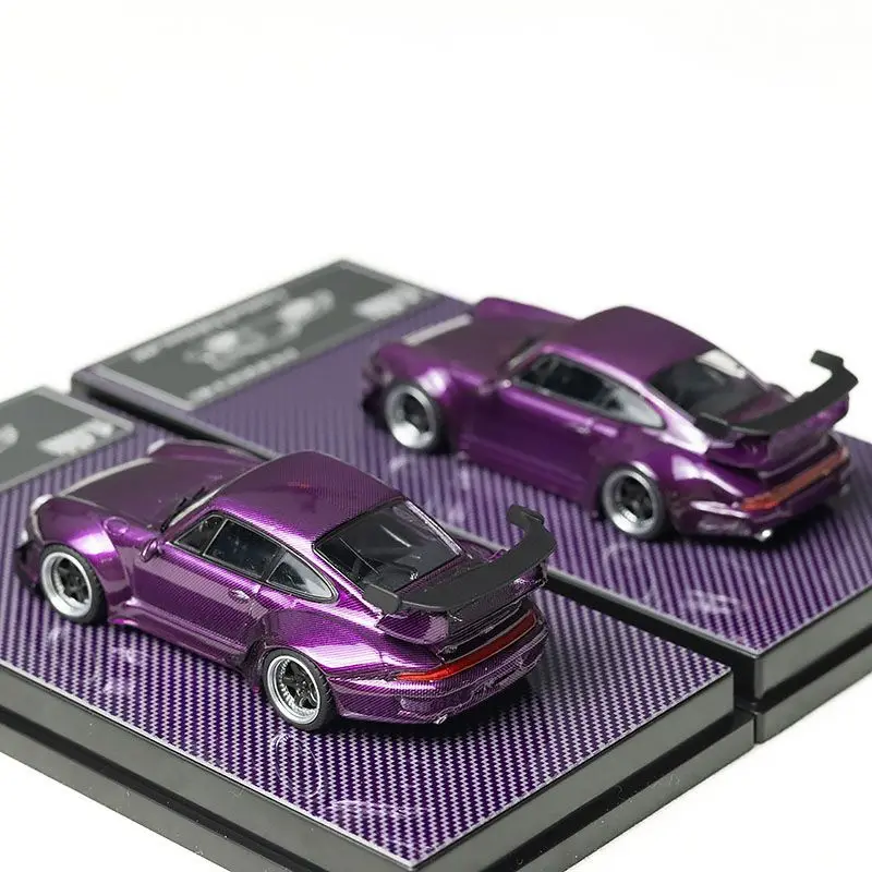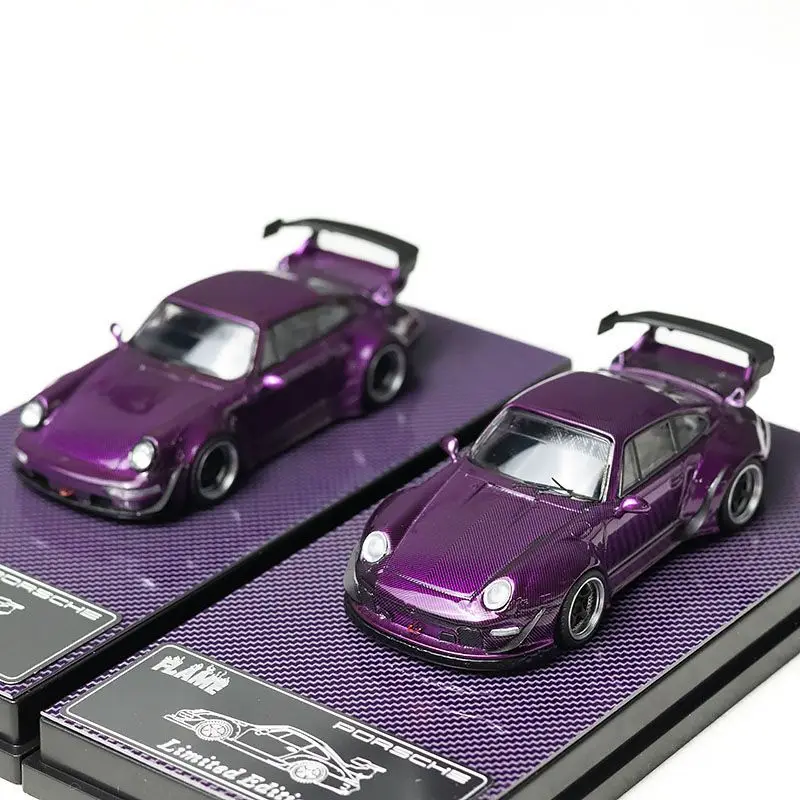 Step into the world of racing with this stunning miniature model of the Porsche 911, available in two iconic versions—964 and 993. Crafted with meticulous detail, these 1:64 scale alloy and plastic cars measure approximately 7 cm long, capturing the sleek, aerodynamic lines of the original. The vibrant metallic purple finish adds a luxurious touch, emphasizing the sporty curves, rounded headlights, and realistic side mirrors. One model features an extended rear wing spoiler that enhances its aggressive look. Perfect for collectors and enthusiasts alike, these diecast cars offer a realistic and refined aesthetic that brings the thrill of racing into your display collection or double as engaging toys for passionate hobbyists.