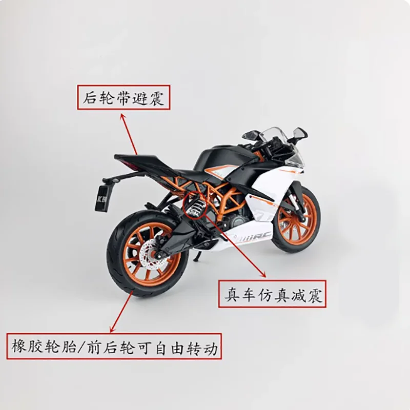 Enhance your collection or gift a passionate motorcycle enthusiast with this meticulously crafted diecast RC390 model. Its vibrant colors, precise detailing, and striking design will captivate anyone who appreciates high-performance sportbikes. Whether displayed on a shelf or used as a centerpiece, this model embodies speed, elegance, and craftsmanship. Don't miss the opportunity to own this beautiful, detailed replica—order now to add a touch of racing adrenaline to your space. Perfect for giving or collecting, it's the ideal way to celebrate automotive excellence.