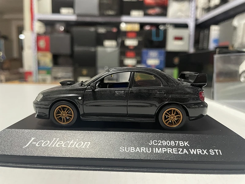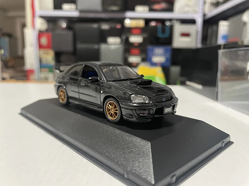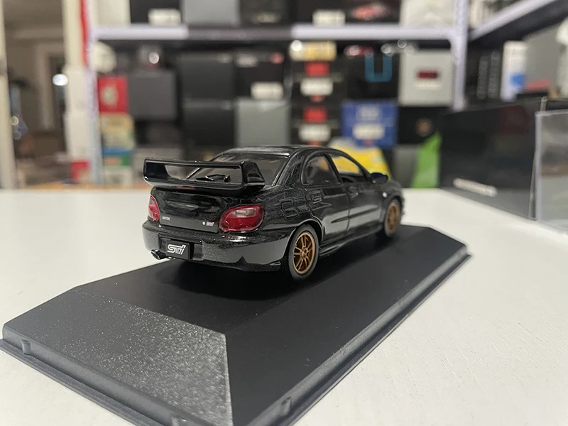 Step into the world of rally racing with this detailed diecast model of the Subaru Impreza WRX STI 8th Generation. Crafted at a precise 1:43 scale from durable metal, this model captures the sleek, aerodynamic body with a glossy black finish that highlights its sporty design. Notable features include a functional grille with Subaru and STI badges, translucent headlights with intricate detailing, and an aggressive hood vent scoop. The sculpted side profile showcases aerodynamic lines, complemented by metal wheels with striking gold multi-spoke finish that rotate freely. The black molded side mirrors and smooth, contoured roof enhance its realistic appeal. A bright yellow rear wing spoiler and detailed tail lights complete this eye-catching model, perfect for display or collection.