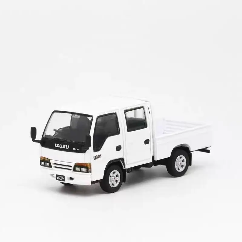 This diecast 1:64 scale Suzuki Isuzu ELF Double Cab Box Van model is crafted from metal, plastic, and rubber, featuring vibrant glossy finishes in three color options—A, B, and C. The sleek, modern design showcases smooth surfaces, black accents on side mirrors and front grille, transparent windows revealing detailed interiors, and textured cargo beds for added realism. Suitable for collectors and enthusiasts aged 14 and above, it offers a high-quality display piece that is perfect as a gift or home decoration. Non-electric and battery-free, this meticulously detailed model emphasizes safety and craftsmanship, making it an excellent addition to any collection or display.
