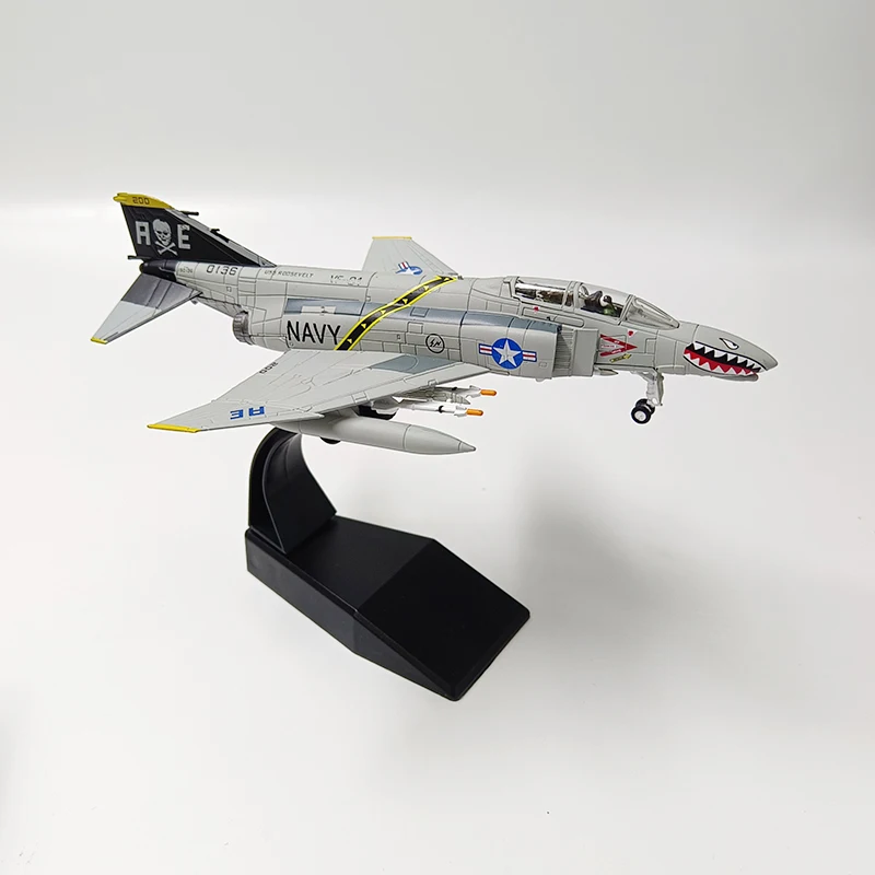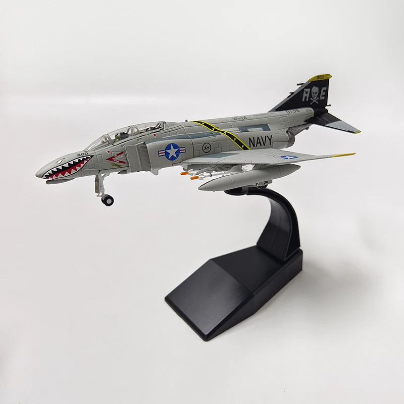 Bring home the striking presence of the USAF Phantom Strike Fighter with this meticulously crafted 1:100 scale diecast model, measuring approximately 18 cm in length and 13 cm wingspan. Made from durable alloy and ABS plastic, it features innovative surface details, sharp panel lines, and a glossy cockpit canopy that captures realism. The aircraft is painted in a sleek light grey finish, accented by bold red and yellow highlights, and showcases a fierce shark mouth graphic on the nose, along with detailed wing and tail fin designs, tactical markings, and insignia. This collectible serves as a stunning display piece or decorative accent for aviation enthusiasts and mature collectors.