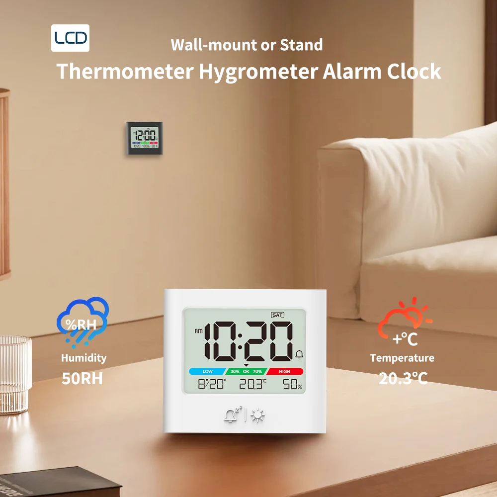 Transform your daily routines with this versatile, stylish clock. Whether for your bedroom, office, kitchen, or outdoor adventures, it ensures you stay punctual, comfortable, and informed. Its sleek, contemporary design complements any setup, and its multi-functionality provides practical air quality monitoring. Experience the convenience of an adjustable backlight and reliable alarm features—making your mornings smoother. Enhance your living or working space with this modern device and enjoy the benefits of precise environmental and time management. Don’t wait—add this essential clock to your collection now!