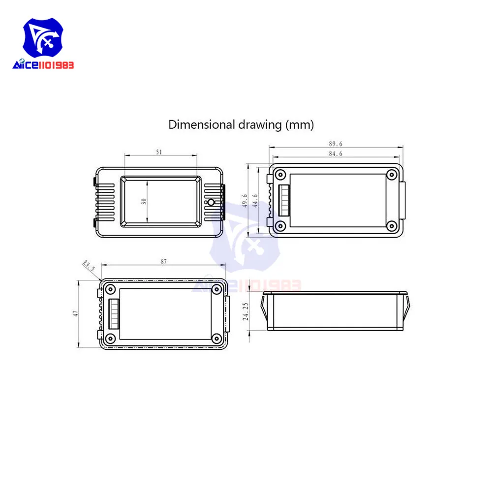 Experience seamless battery performance monitoring with this high-tech digital tester. Its sleek, rectangular black display panel, accented by smooth rounded edges, offers a contemporary and professional look. The 3.3-12V power supply, combined with its sturdy plastic casing featuring subtle ribbed textures on the sides, ensures durability and easy handling during installation. The large, full-viewing-angle LCD screen illuminates in bright blue, providing crisp visibility of all measurement parameters even in dim lighting, thanks to its self-backlight function. This innovative device displays nine critical measurement values simultaneously—voltage, current, power, energy, resistance, capacity, running time, and more—making monitoring straightforward and efficient. Designed for indoor use, it guarantees reliable performance every time you need to assess battery health and efficiency.