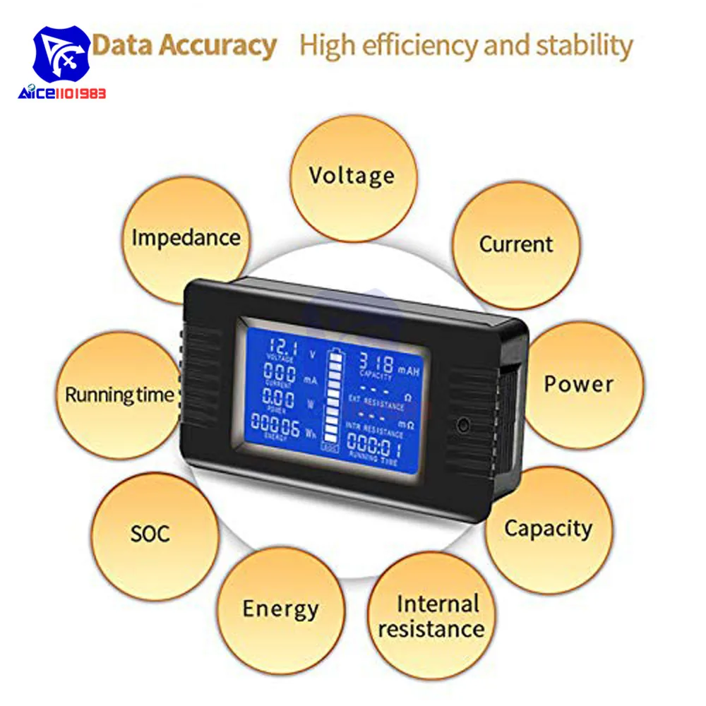- Features capacity measurement from 0-1000AH, power measurement from 0-60,000W, and energy consumption from 0-9999kWh, enabling thorough assessment of battery state and energy use.