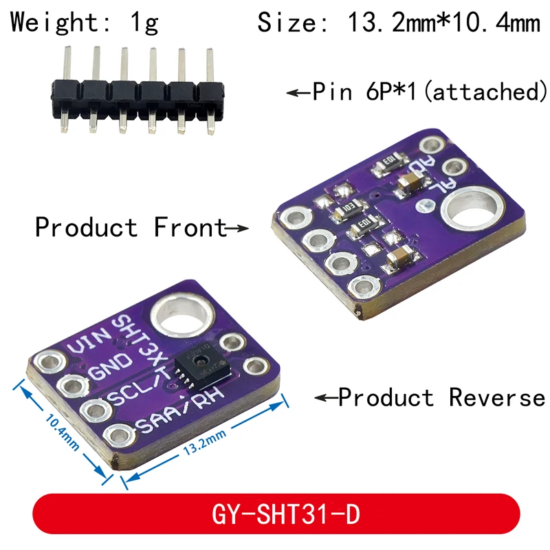 - Versatile compatibility with GY-SHT30-D, GY-SHT31-D, SHT35, SHT40, SHT41, and SHT45 models, supporting diverse embedded and IoT applications for accurate environmental sensing.