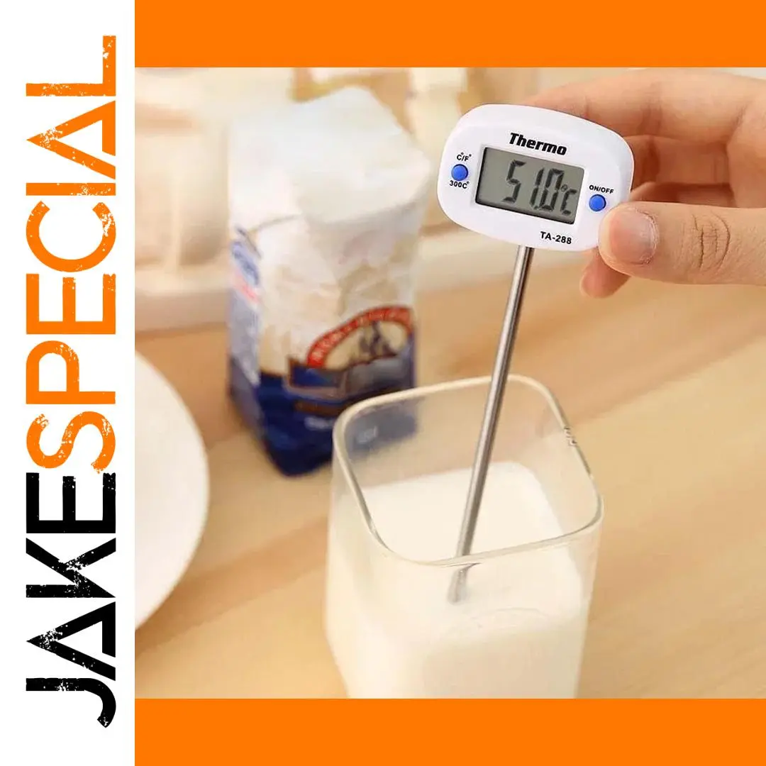 Experience precise temperature measurement with this sleek, compact digital kitchen thermometer. Its stainless steel probe ensures accurate readings of liquids, water, oils, and food, reaching up to 120°C. The ergonomic design fits comfortably in your hand, making cooking and baking more convenient. The white plastic body features a crisp digital display under 1.9″, easily readable during food prep. Blue accents on the C/°F and ON/OFF buttons add a modern touch, blending seamlessly into any kitchen setting. Batteries are included, allowing immediate use. Whether you're perfecting a recipe or monitoring special cooking processes, this thermometer offers reliable performance in a stylish, functional package. Elevate your culinary skills today with this essential kitchen tool.