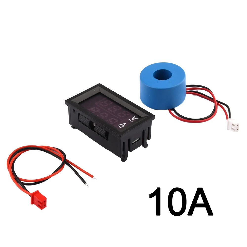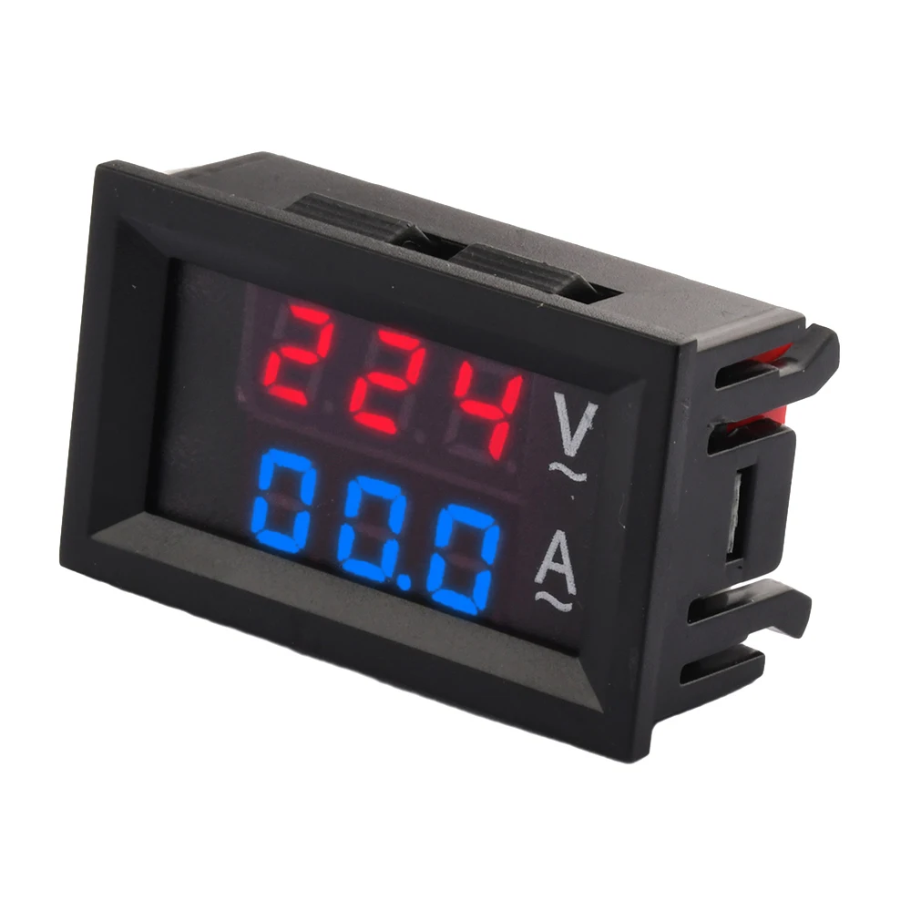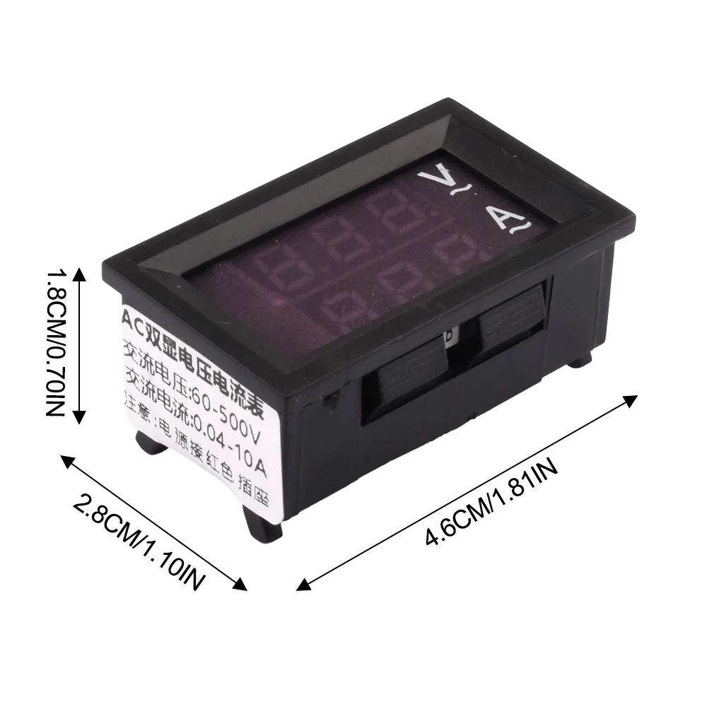 Experience the confidence of accurate electrical measurements with this sleek, compact digital voltmeter and ammeter kit. Designed for electricians and electrical enthusiasts, this device features a bright, large digital display with crisp red and blue digits for voltage and current readings. Its durable black housing with a matte finish combines practicality and modern aesthetics. The device easily integrates into various electrical setups, measuring AC voltage from 60V to 500V with a 0.01 accuracy class. Available in models supporting 10A, 50A, or 100A current ranges, it offers versatile measurement capabilities. The 20cm wiring leads, and mounting hole dimensions (46x27mm), make installation straightforward. Whether you're troubleshooting or monitoring systems, this sleek digital tool provides reliable, precise, and essential electrical data in a simple, user-friendly form.