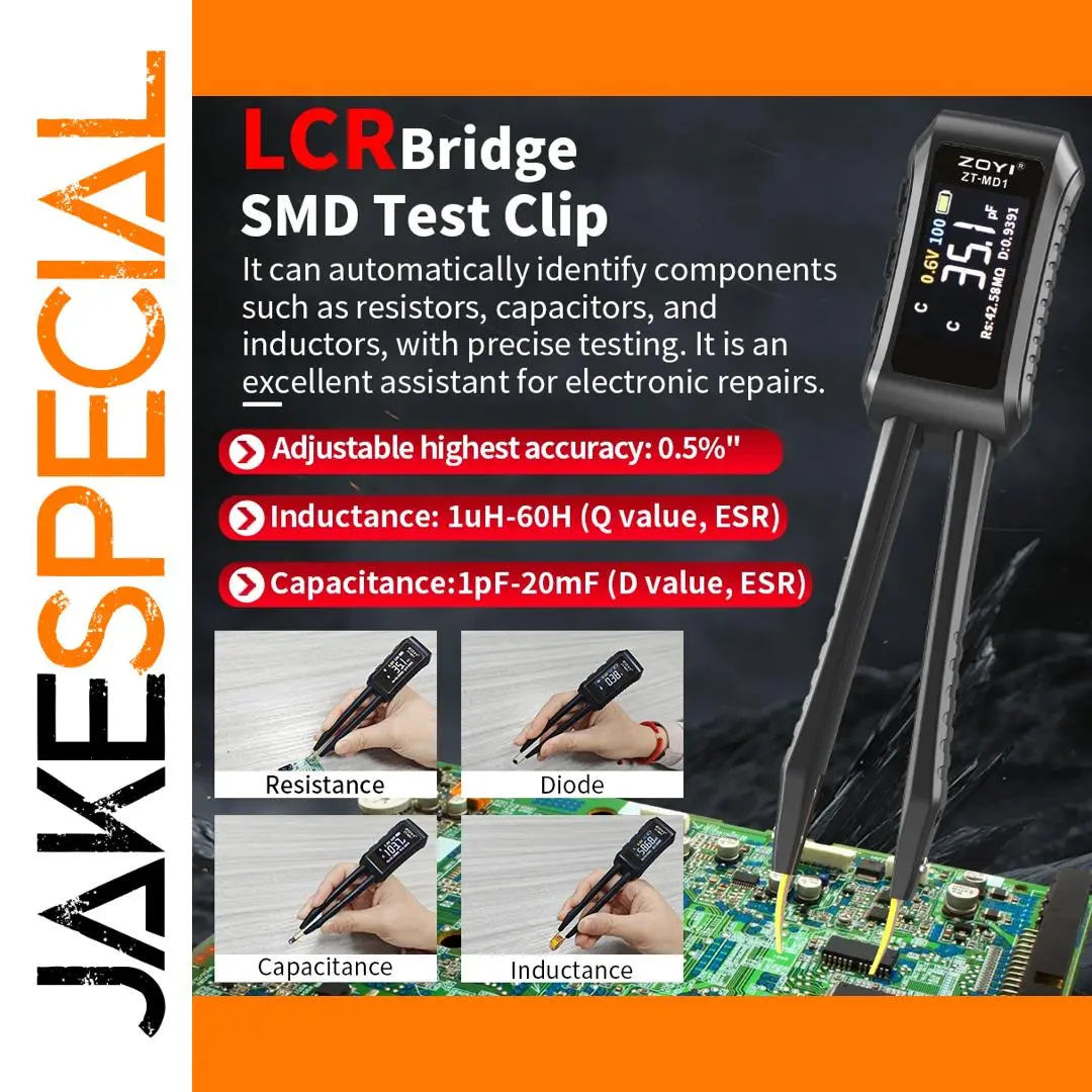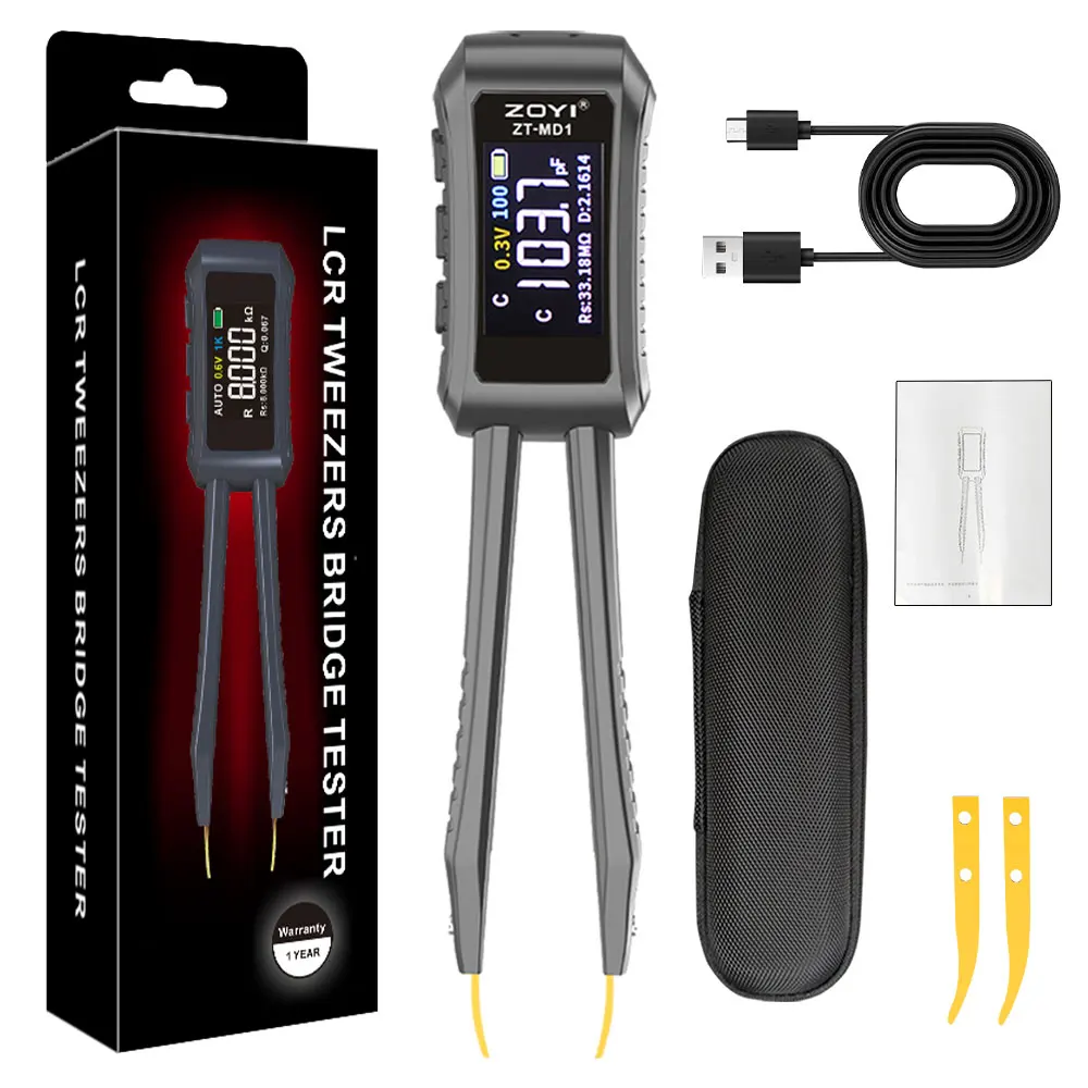 The ZT-MD1 Digital Smart Tweezer is a sleek, professional-grade measurement tool designed for precise testing of resistors, capacitors, inductors, diodes, and continuity in electronic components. Measuring resistance from 10 milliohms to 10 megaohms, capacitance from 1 picofarad to 20,000 microfarads, and inductance from 1 microhenry to 60 henrys, it features auto-ranging operation and a clear digital display. Compact at 146mm x 30mm x 18mm, with metallic pointed tips and a textured grip, it offers reliable, multifunctional testing with built-in batteries for convenience, perfect for adult electronic enthusiasts and professionals seeking accuracy and efficiency.