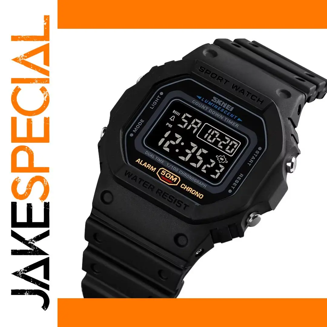 Experience the perfect blend of style and functionality with the SKMEI JS-SMDWMTCD Digital Sport Watch for Men. This sporty, multifunctional timepiece features a durable polyester case and comfortable PU band, designed to keep up with your active lifestyle. With a water resistance of up to 50 meters, you can take it swimming without worry. Enjoy the convenience of dual time display, multiple alarms, a chronograph, and a week/date display. The LED backlight ensures that you can always check the time, even in low-light conditions. Elevate your adventures and make this stylish watch a part of your journey.