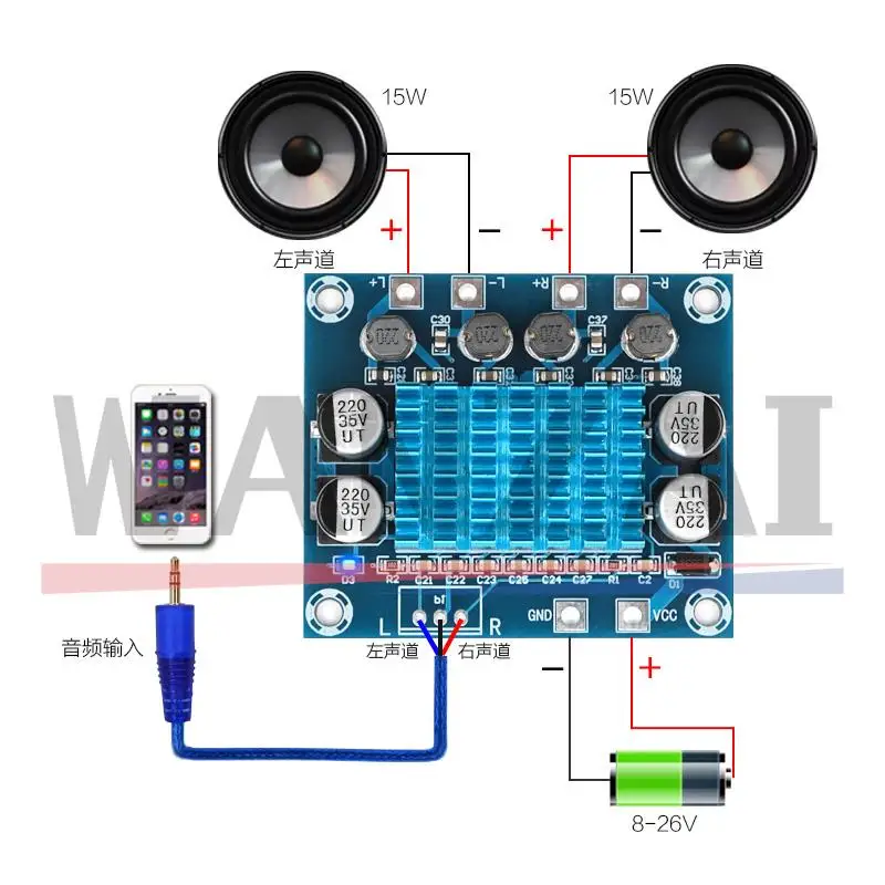 - High-performance TPA3110 chip delivers 30W per channel, providing powerful stereo sound suitable for entertainment and audio projects requiring clear, detailed output.