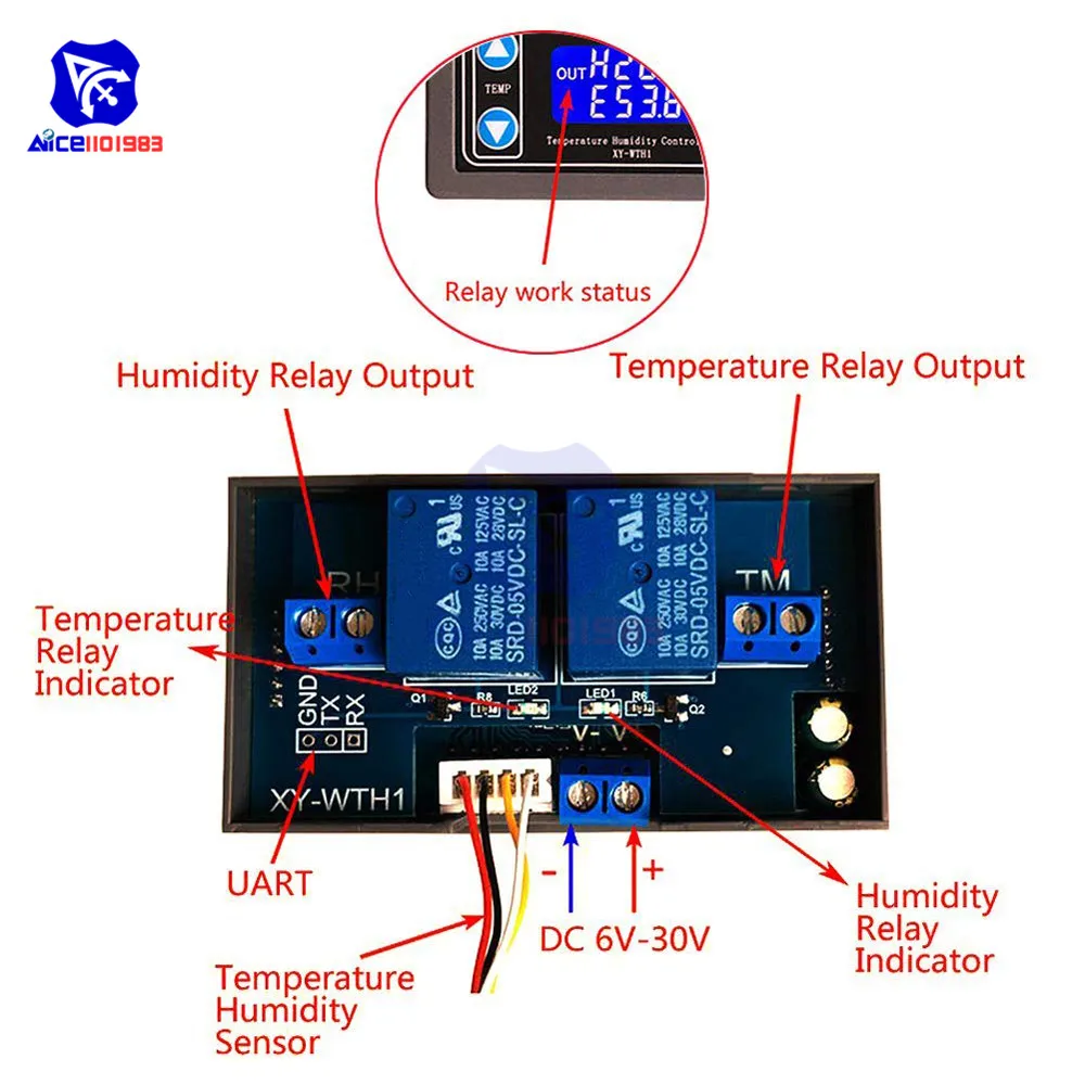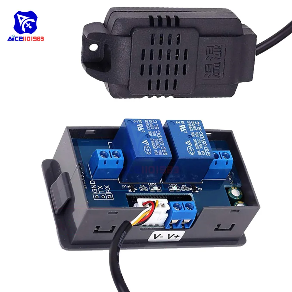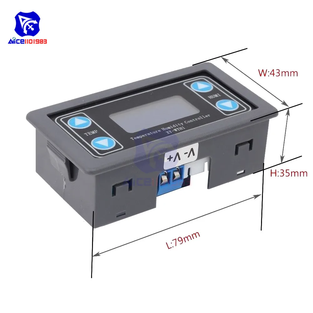 Experience precise environmental control with this sleek digital temperature and humidity controller featuring a vivid HD LCD display, measuring temperature from –20°C to 60°C with ±0.1°C accuracy and humidity from 0% to 100% RH with ±0.1% RH accuracy. Operating on DC 6-30V with a maximum load current of 10A, it supports simultaneous parameter measurement, automatic mode identification for heating or cooling, and extensive correction adjustments. Its compact design (79 x 43 x 35 mm) includes a 1-meter sensor probe (60 x 30 x 20 mm), making it ideal for smart home, industrial, and automation applications. The module offers reliable dual relay outputs and real-time UART data transmission.
