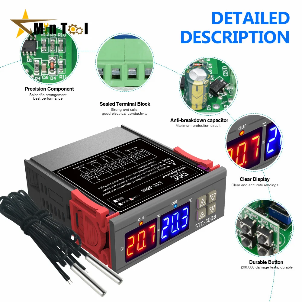 Imagine seamlessly managing temperature in your system with confidence — this robust controller is ready to optimize your processes. Its sleek design, clear digital interface, and versatile voltage support make it an essential component for your industrial or household setup. By choosing this device, you’re investing in precision, durability, and ease of use, ensuring your temperature control needs are met flawlessly. Don’t wait to improve your system's efficiency — add this high-quality digital temperature controller to your arsenal today and enjoy peace of mind knowing your equipment operates at optimal conditions.