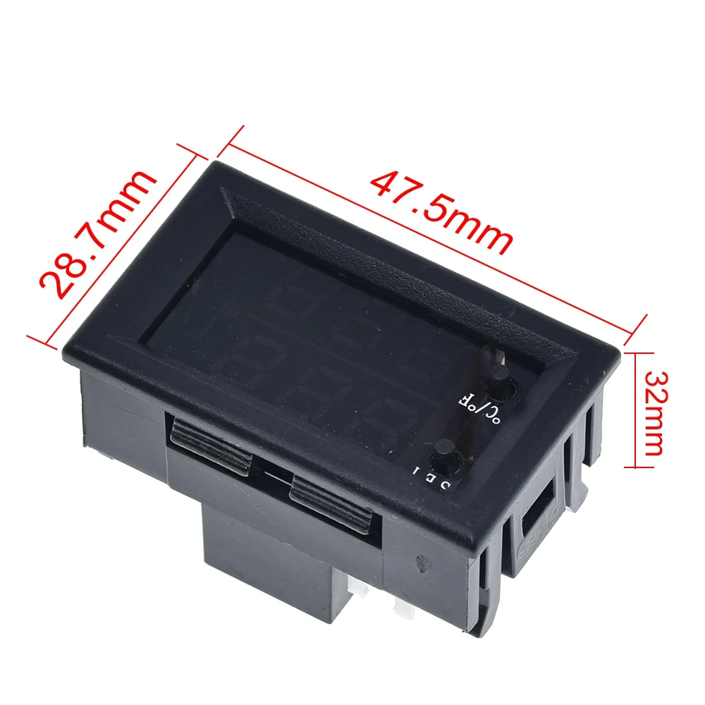 Imagine having full confidence in your temperature management system with this sleek, black digital thermostat. Its modern rectangular design, measuring 48mm by 29mm and 32mm high, exudes professionalism and practicality. The dark-tinted display window reveals two vibrant, illuminated readouts—crisp red for current temperature and cool blue for setpoint—making readings clear at a glance. Small, discreet black buttons for setting and toggling units complement the minimalist aesthetic. The waterproof NTC sensor features a shiny silver probe that adds an industrial touch while ensuring durability. Designed for electronic projects, this compact device ensures precise regulation, high-temperature protection, and seamless operation in demanding environments.