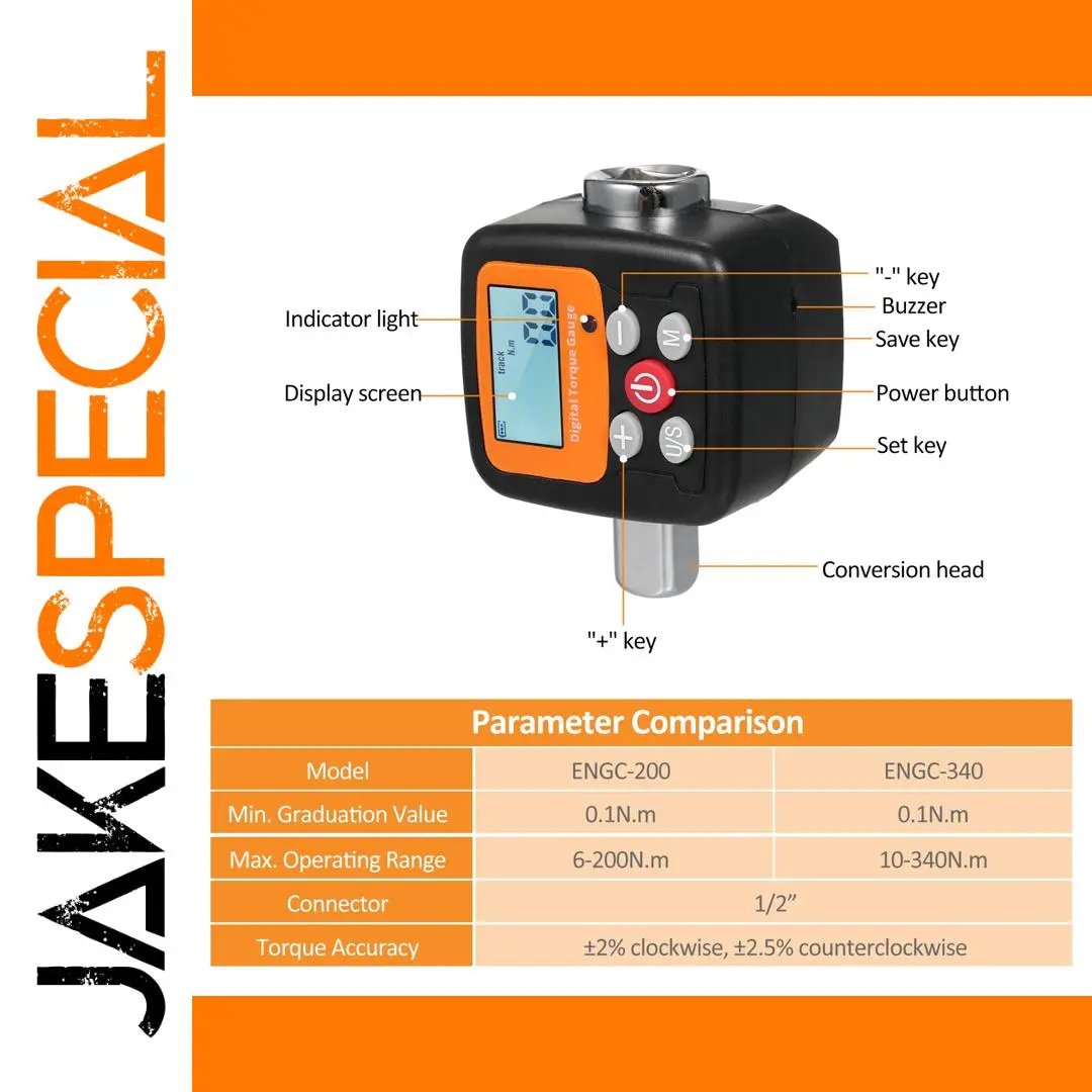 - Alarm and alerts: Features an audible buzzer and flashing red LED indicator when reaching 80% of preset torque, with continuous alert at 100%, preventing over-tightening.