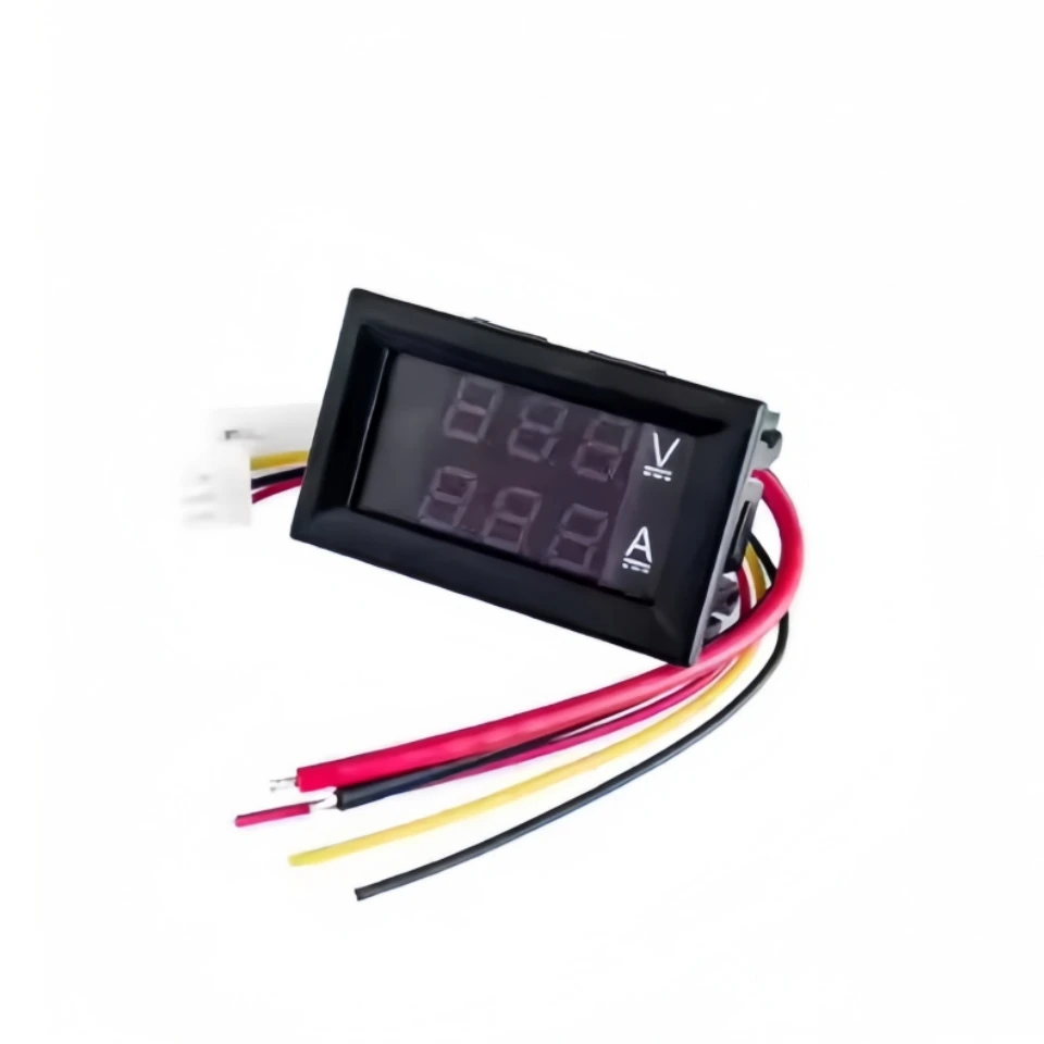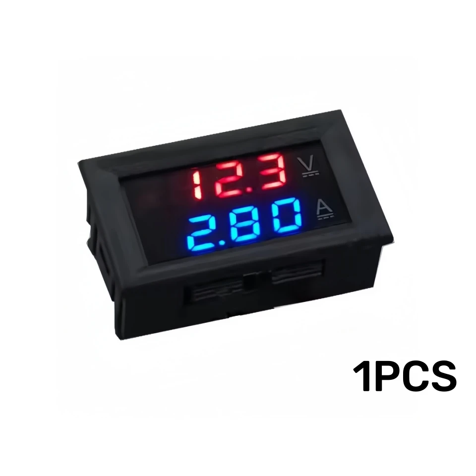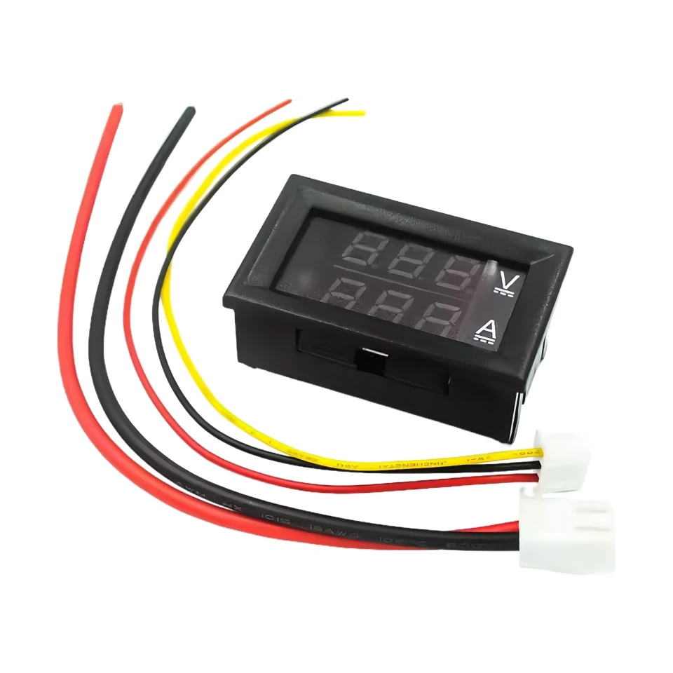 Experience precise real-time monitoring with this sleek digital voltmeter and ammeter module. Perfect for various electronic projects, it features a modern black plastic housing with smooth beveled edges that enhance its minimalist design. The dual LED display panel showcases voltage readings in bright red at the top and current in vivid blue below, making measurements clear and easily readable. The compact 0.28-inch display size offers bright visibility without cluttering your device. Its straightforward design includes no extra buttons, focusing solely on functionality and ease of use. With connect wires included, setup is quick and hassle-free, making this module ideal for hobbyists or professionals seeking reliable digital measurement solutions.