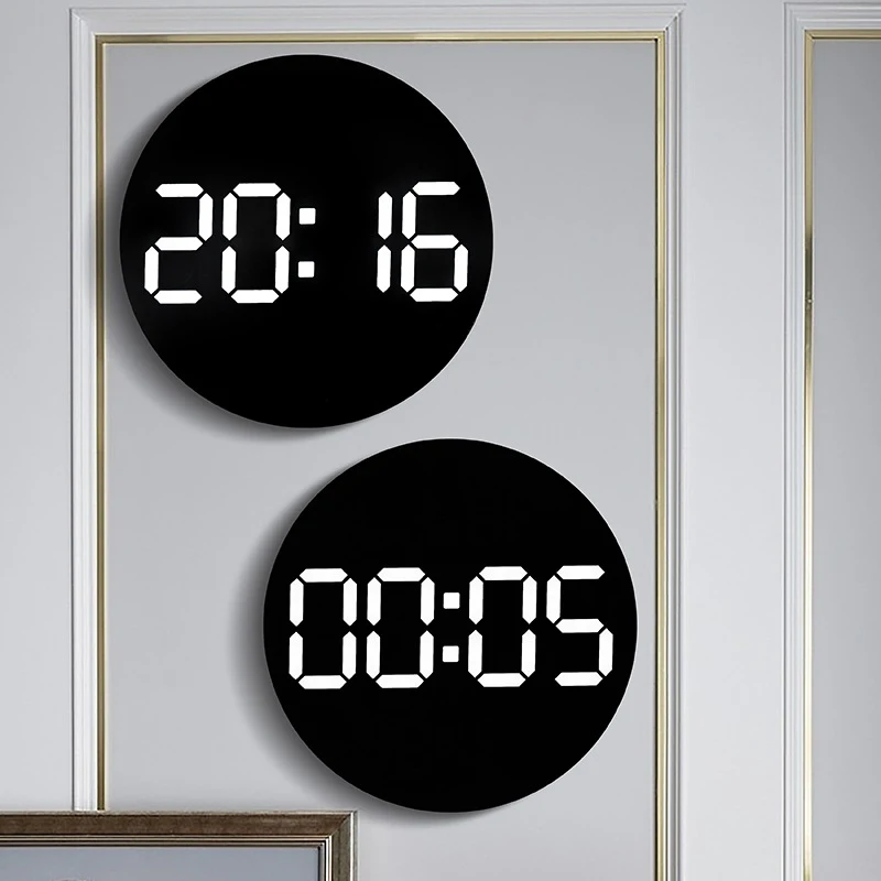Transform your living space with this sleek, modern digital wall clock, measuring 25.5 cm in diameter and 3.5 cm thick. Its minimalist round design features a matte black face that perfectly contrasts with bright, pixelated white digits, making time easy to read from across the room. The display includes time, date, day of the week, temperature, and humidity, all presented in a clear and modern style. The clock supports both Chinese and English date formats, ideal for versatile decor. Equipped with remote control and brightness adjustment, this clock seamlessly combines functionality with aesthetics. It’s perfect for enhancing your bedroom or living room ambiance, creating a stylish yet practical atmosphere that’s always easily accessible. You’ll love how effortlessly this clock blends into your modern decor while providing accurate, detailed information at a glance.