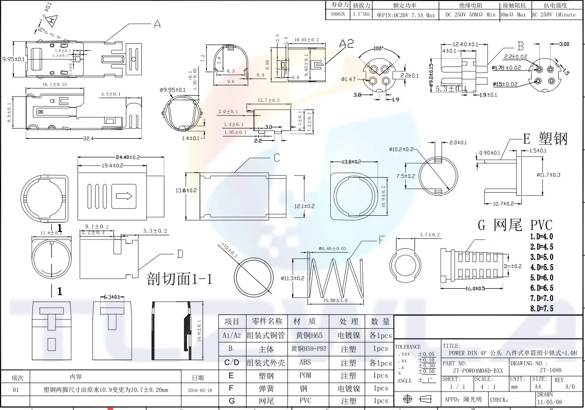 Keys features of the this DIN 3/4Pin Male DC Power Plug