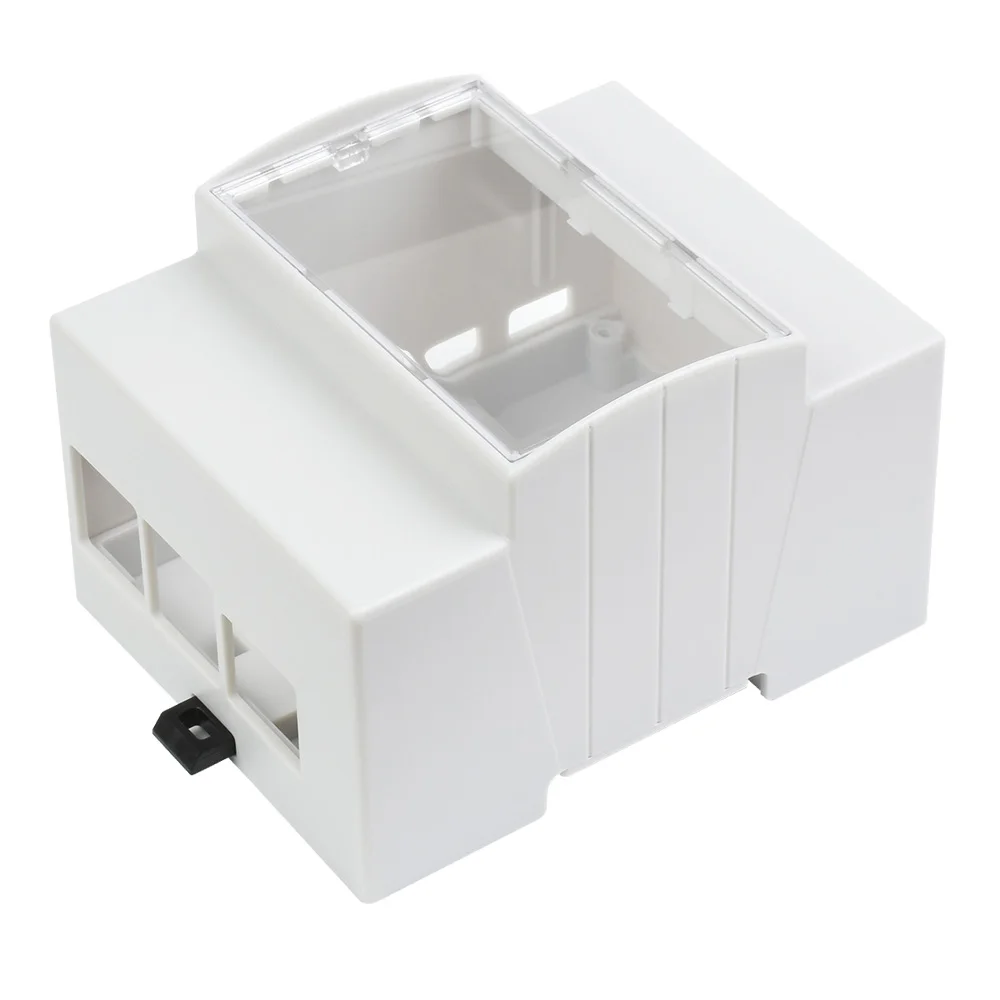 Enhance your project with this durable DIN rail-mounted ABS enclosure designed specifically for the Raspberry Pi 4 Model B. Featuring a large inner space and a clear, tough top window for easy monitoring, the enclosure is constructed from injection-molded ABS for robustness. Its minimalist, white rectangular design includes subtle vertical ridges and beveled edges that add visual appeal. Compatible with standard electrical rails, it provides secure DIN rail support and straightforward assembly, including a rail lock, bottom panel removal, and screw fixation. Please note, the enclosure does not include the Raspberry Pi 4 or RS485 TG ETH (B), making it ideal for electrical, industrial, and protective applications.