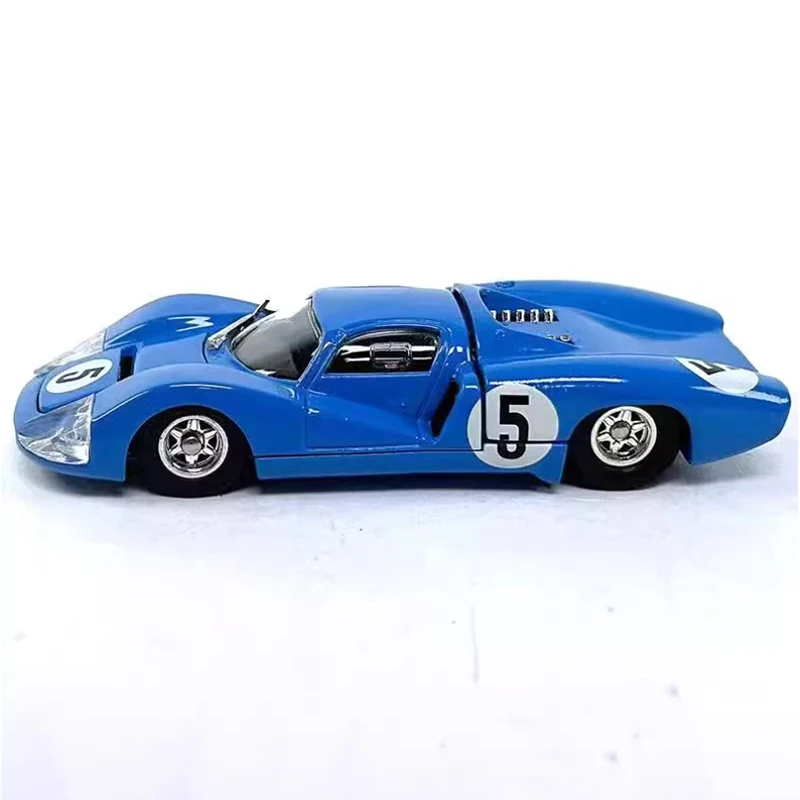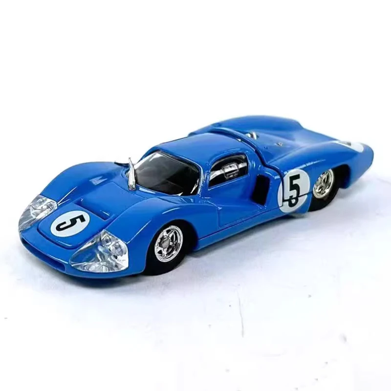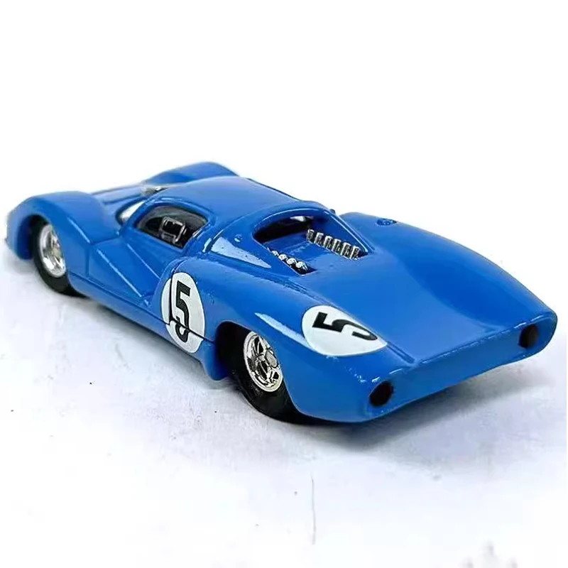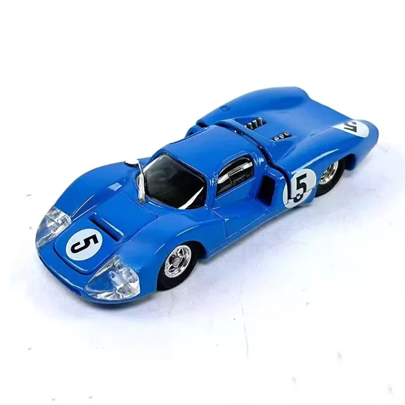 The DINKY 1:43 Scale MATRA 630 diecast model car captures the essence of racing with its stunning bright blue finish and sleek aerodynamic design. It features intricate details such as clear plastic windshields, shiny chrome rims, and realistic rubber tires, making it a visually appealing piece for collectors and enthusiasts. The body of the car is adorned with distinct white decals displaying the number “5,” while the partially opened rear showcases intricate metallic silver engine details. Perfect for display or as a gift, this static model requires no batteries and is made from a durable combination of alloys and plastics, ensuring lasting beauty in your collection.