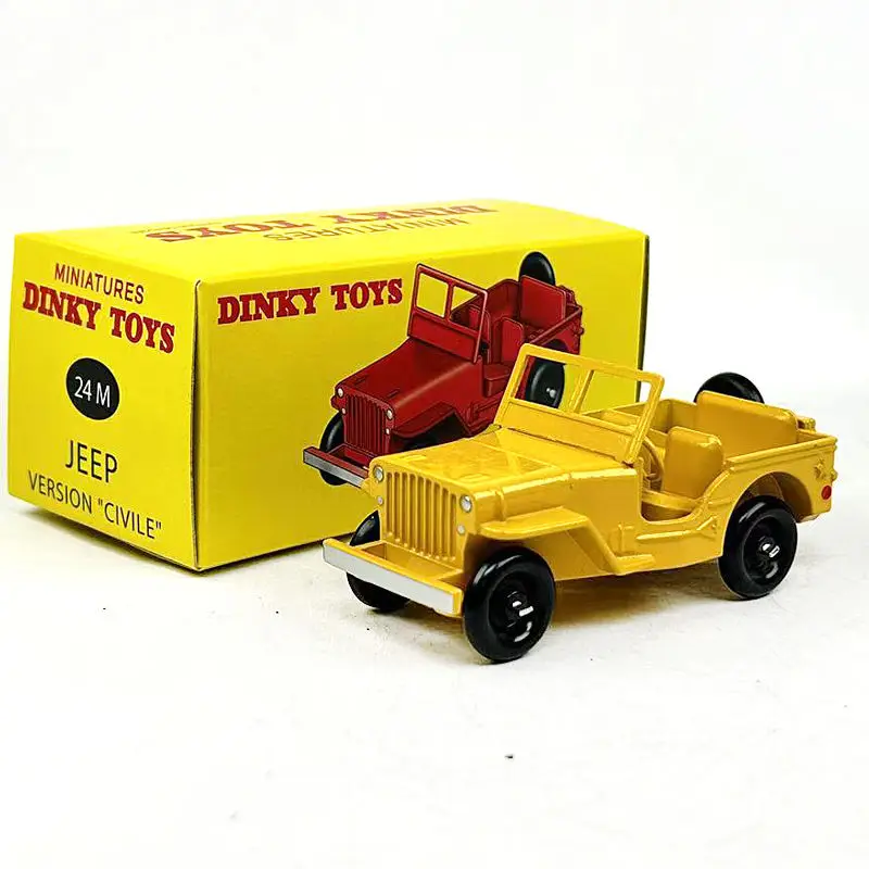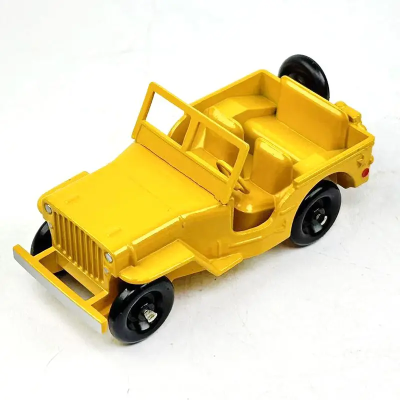 Imagine adding this stunning DINKY TOYS 1:43 Scale Jeep to your collection. Its vibrant yellow finish captures attention and adds a pop of color to any display. Crafted from durable alloy and plastic, this model reflects the timeless design of a classic civilian jeep, showcasing detailed features such as prominent grille slats and round headlights. The open-top design and two yellow interior seats make this piece as charming as it is realistic. Whether you're a collector or enjoy imaginative play, this model is perfect for you.