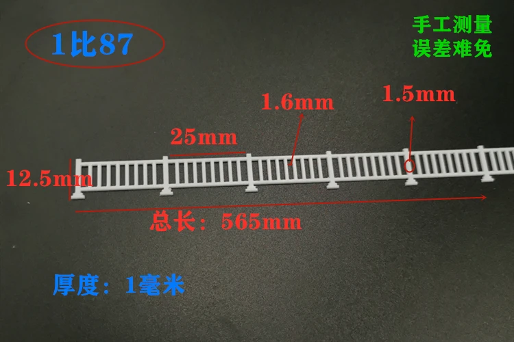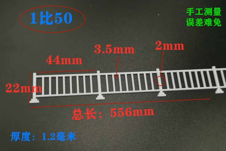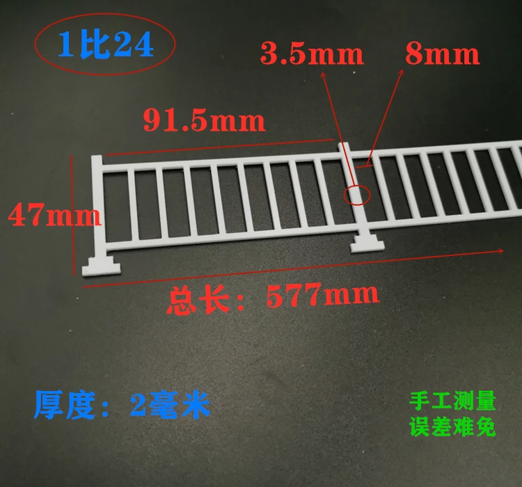Enhance your diorama and landscape designs with this exquisite set of 2 pieces of miniature railing model kits. Crafted from durable ABS plastic, these railings feature a pristine white finish that complements various miniature settings. Each set includes four different scales: 1:87, 1:50, 1:35, and 1:24, each offering specific dimensions for versatile use. The minimalistic design, featuring horizontal and vertical posts, provides both elegance and stability, while their customizability allows you to modify them as needed for your unique projects and scenes. These railings are perfect for adult collectors and model enthusiasts alike who seek exceptional realism and aesthetic appeal.