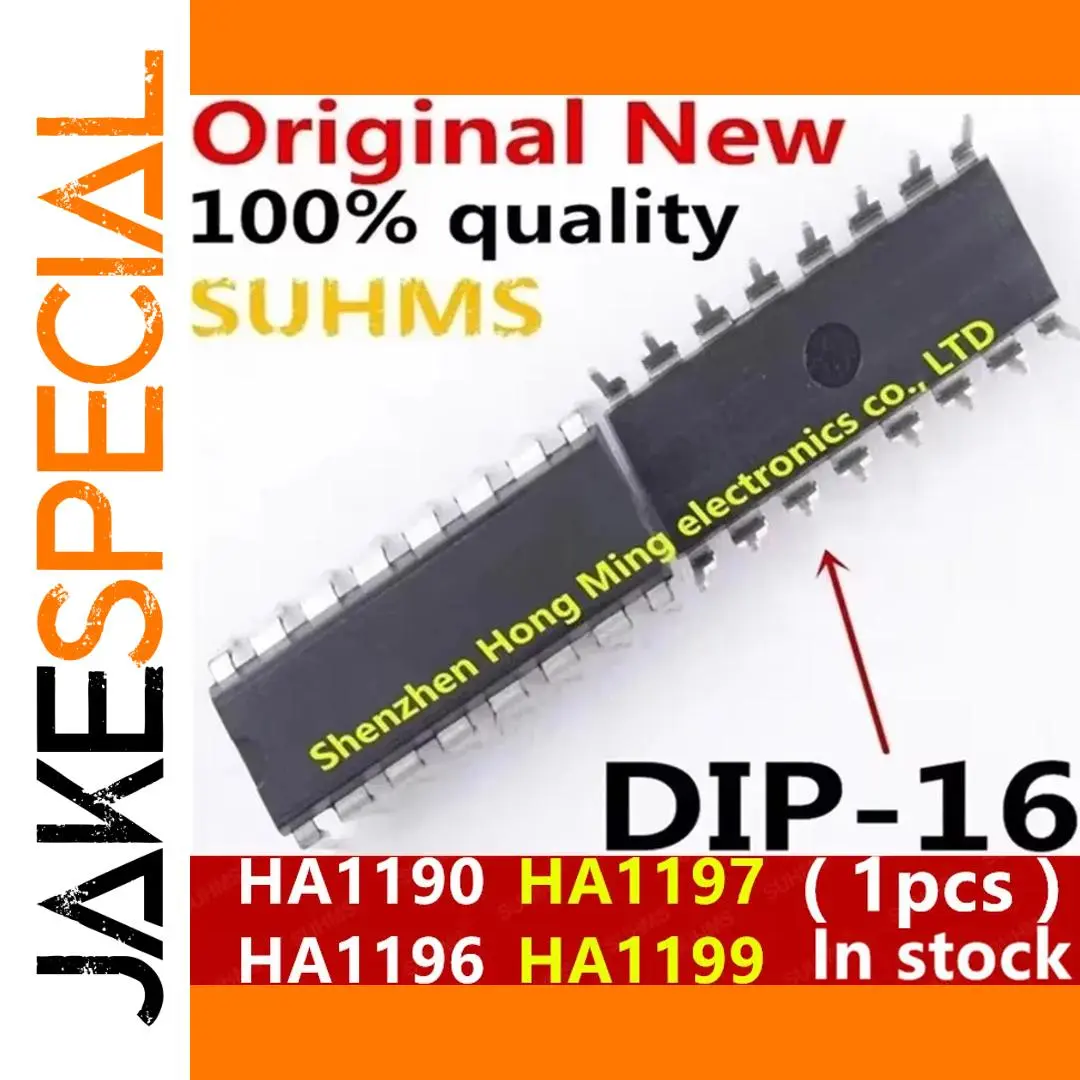 Experience seamless performance with this high-quality DIP-16 drive IC designed for computer applications. Featuring a sleek black rectangular body, it boasts a flat top surface that underscores its minimalist yet professional appearance. The 16 metallic pins, evenly spaced and slightly bent outward on both sides, ensure a secure connection and easy insertion into sockets or PCBs. Crafted to meet international standards, this new IC guarantees durability and reliability across various operating environments. Its customizable design makes it suitable for a range of tech setups, delivering excellent dissipation power. Available in multiple color variants corresponding to models HA1190, HA1196, HA1197, and HA1199, it offers versatile compatibility. This component is perfect for upgrading or repairing your computer's drive system with confidence.