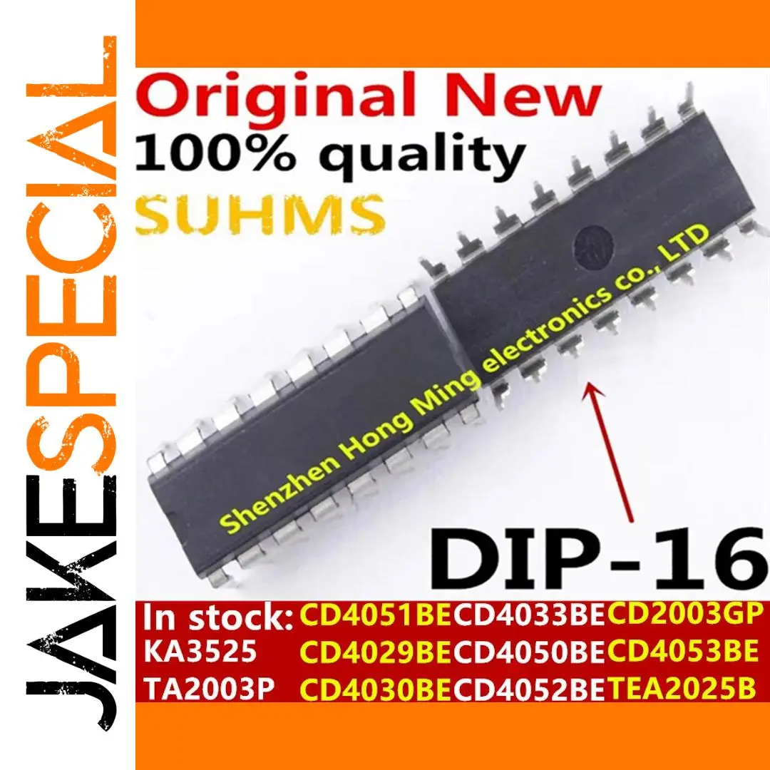 This set of 10 new DIP-16 ICs includes models such as CD4051BE, CD4052BE, CD4030BE, CD4033BE, CD4050BE, CD4052BE, CD4053BE, TEA2025B, KA3525, and TA2003P. Each IC operates within an international standard supply voltage and dissipation power, making them ideal for computer applications. The chips feature a sleek black rectangular design with a flat surface and evenly spaced metal pins along two parallel sides, ensuring precise and reliable connections in your projects. Perfect for electronics enthusiasts and professionals, these high-quality ICs provide versatility and dependable performance for a variety of circuit designs.