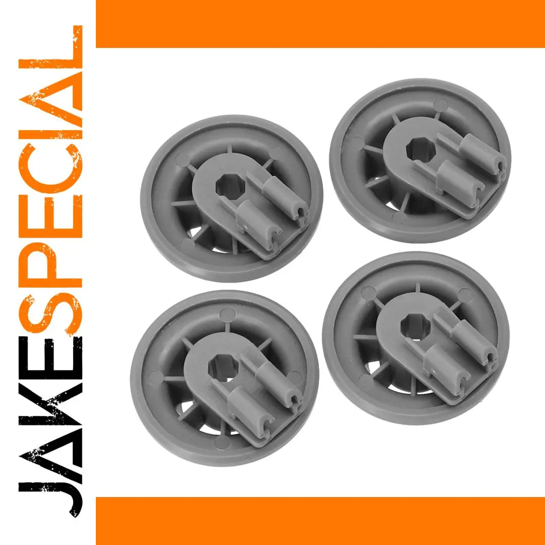 - The wheels feature a sleek, matte grey finish with a practical, minimalist design for easy installation and seamless integration into your dishwasher's interior.