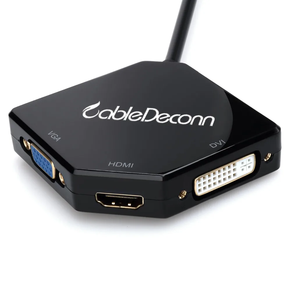 - Includes three female output ports—HDMI, DVI, and VGA—highlighted by distinct white and blue connectors for quick, hassle-free setup with various display devices.